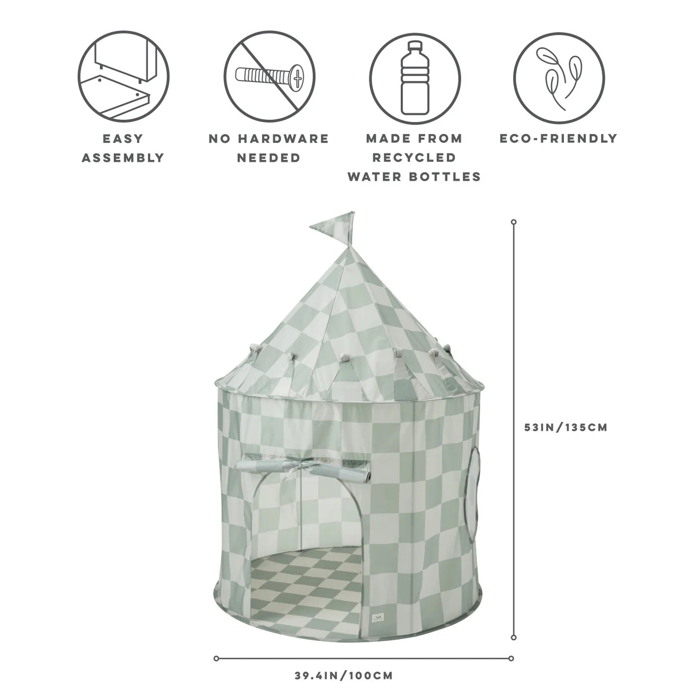 3 Sprouts Recycled Fabric Play Tent - Checkerboard Green