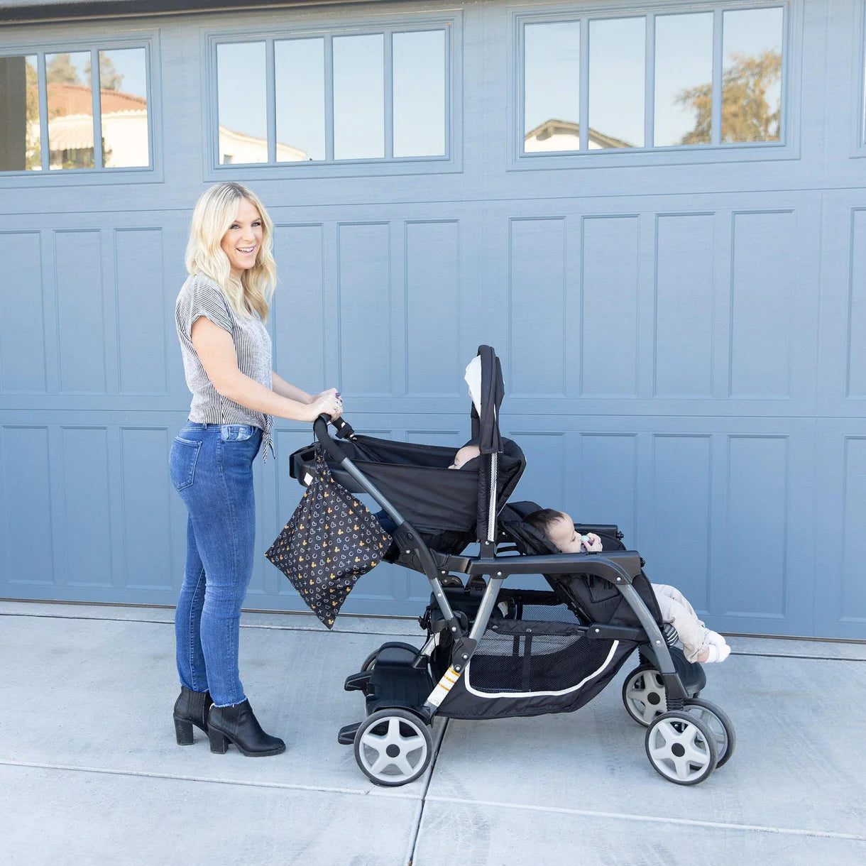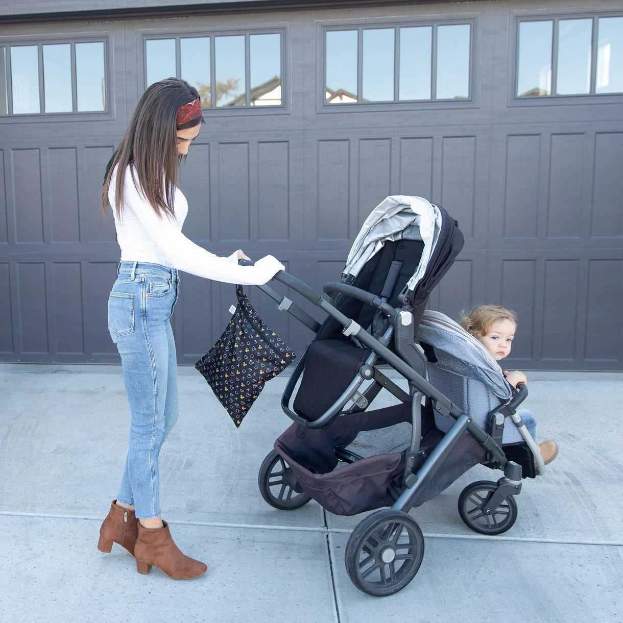 Fresh off the celebration of his 90th birthday, Mickey Mouse and his sweetheart, Minnie Mouse are sporting new, classic black and white looks in our Wet Bags. The better alternative to single-use plastic bags, our wet bags are made from the same waterproof and stain-resistant fabric as Bumkins award-winning SuperBib. A smooth zipper closure locks away the mess and single-ply construction means no worrying about icky stuff growing between layers of fabric. Wet bags are great for carrying diapers, dirty gym clothes and wet swimsuits. Not just for wet stuff – these bags make excellent organizers for toys, accessories, toiletries, electronics, travel and more! With a snap handle, snap it to a stroller, changing table or suitcase. Bags are single compartment, non-gusseted, non-insulated and non-stretch.