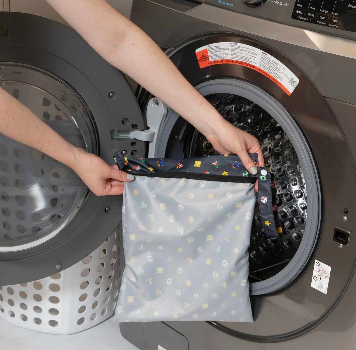 Perfect for journeys near or far, the Bumkins Wet Bag is made from Bumkins' lightweight, easy-wipe, machine washable waterproof fabric with heat-sealed seams for true waterproof protection! These bags are great for holding anything from cloth diapers to dirty clothes to wet swimsuits. A smooth zipper closure locks away the mess, while single-ply construction means no worrying about icky stuff growing between layers of fabric.