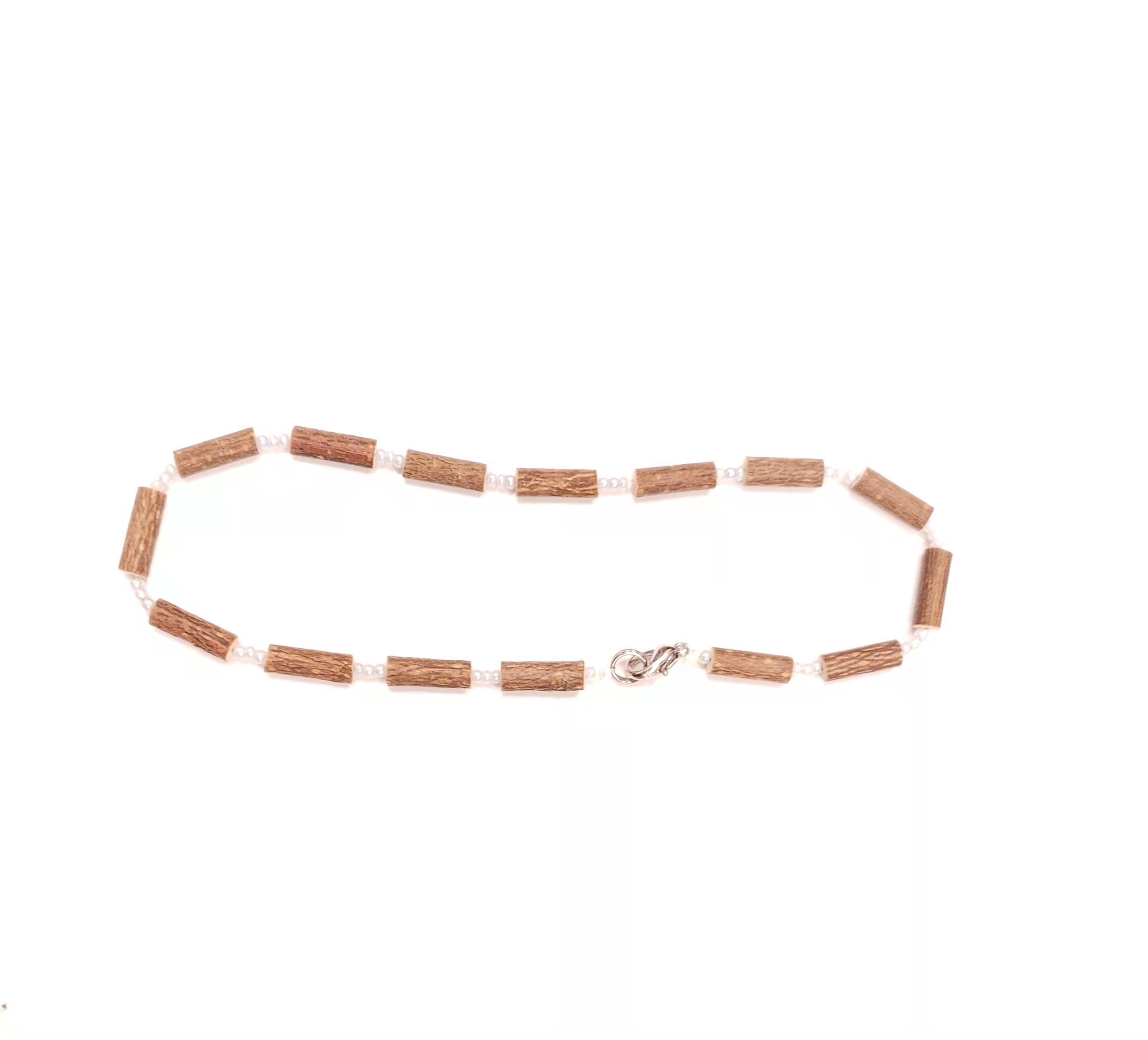 The efficiency of the necklace is never altered in contact with water. However, hazelwood is still wood. If it is in contact with water for a prolonged period of time it may split or peel. To ensure it keeps it's appearance, it is preferable to take it off before water exposure.