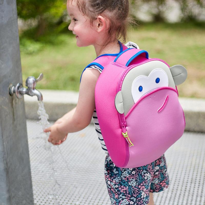 This happy Pink Monkey Backpack is sure to make adventures more fun - whether off to preschool or into the jungle. Sized for the active preschooler, the machine-washable backpack has adjustable straps, an easy-grip handle, and plenty of pockets to stash snacks and gear.