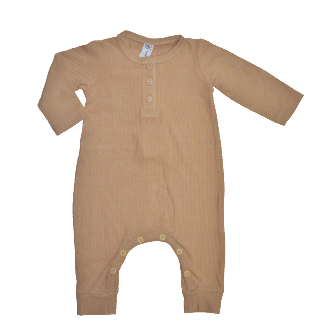 Bamboo Ribbed Henley long sleeve romper with three buttons and inner legs snaps for easy diaper changes. Made from buttery-soft lightweight ribbed knit fabric, which will allow your little babes to move easily. This basic romper will be a favorite in your little one's closet and can be worn any season!