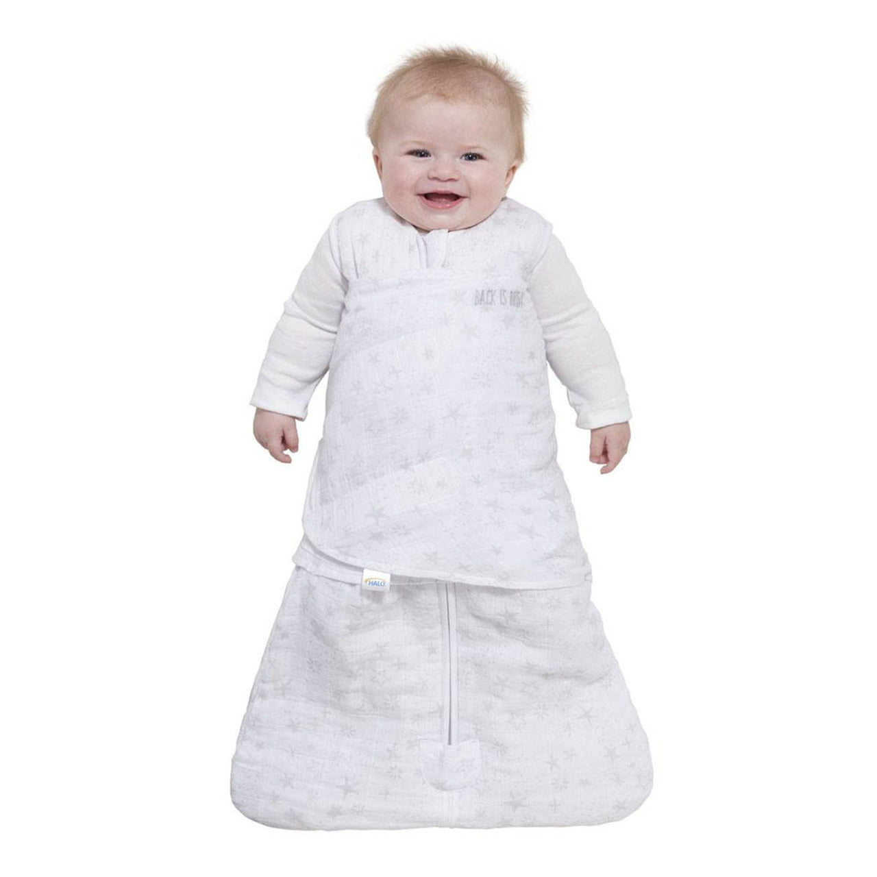 The Halo SleepSack swaddle is the original 3-way adjustable swaddle that adjusts to your baby’s sleep style. Swaddle arms in, hands-to-face, one or both arms out to ensure baby’s best sleep and an easy and gentle transition to the SleepSack® wearable blanket when it is time to stop swaddling. Used in hospitals nationwide, the Halo SleepSack Swaddle is the #1 choice of hospitals and is recognized as Hip Healthy by the International Hip Dysplasia Institute. Its strong adjustable fasteners ensure a perfect fit and resist breakouts for more secure swaddling. A two-way zipper with tab covers at top and bottom allows your baby to stay swaddled for easy diaper changes and makes dressing easy. Use over regular sleepwear to take the place of loose blankets.