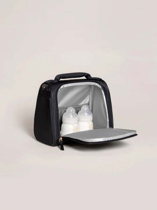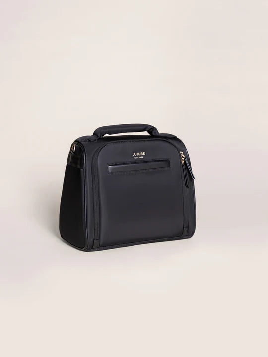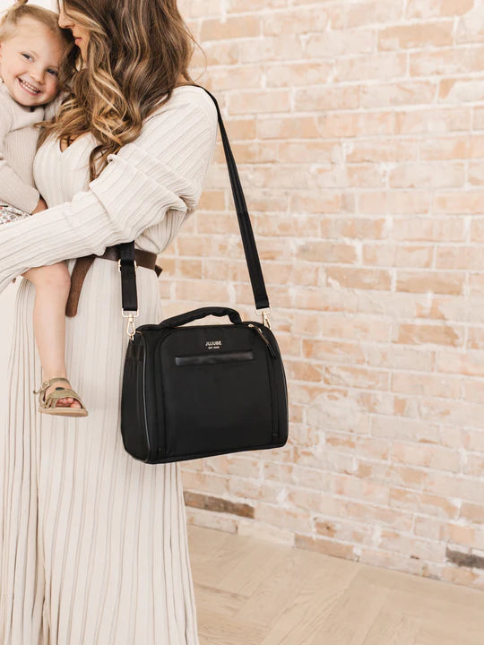 Keep your cool with the stylish Insulated Bottle Bag from JuJuBe. For easy use, this bag has an outside slip pocket, interior mesh pockets, and an elastic bottle strap, as well as a quick-grab top handle and an adjustable, detachable messenger strap. Doubling as a lunch bag, the bottle bag features food-safe, easy-to-clean PEVA lining, and accommodates up to three tall bottles with additional space for food to keep your little one’s favorite snacks and drinks cool while you’re out and about. Parent life is full of food messes, and the Insulated Bottle Bag is easy to clean. Simply toss it in the washing machine!