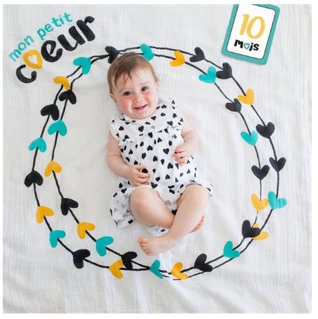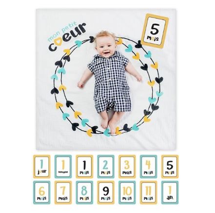 • 1 cotton muslin blanket (40"x40") + 7 double-sided age cards