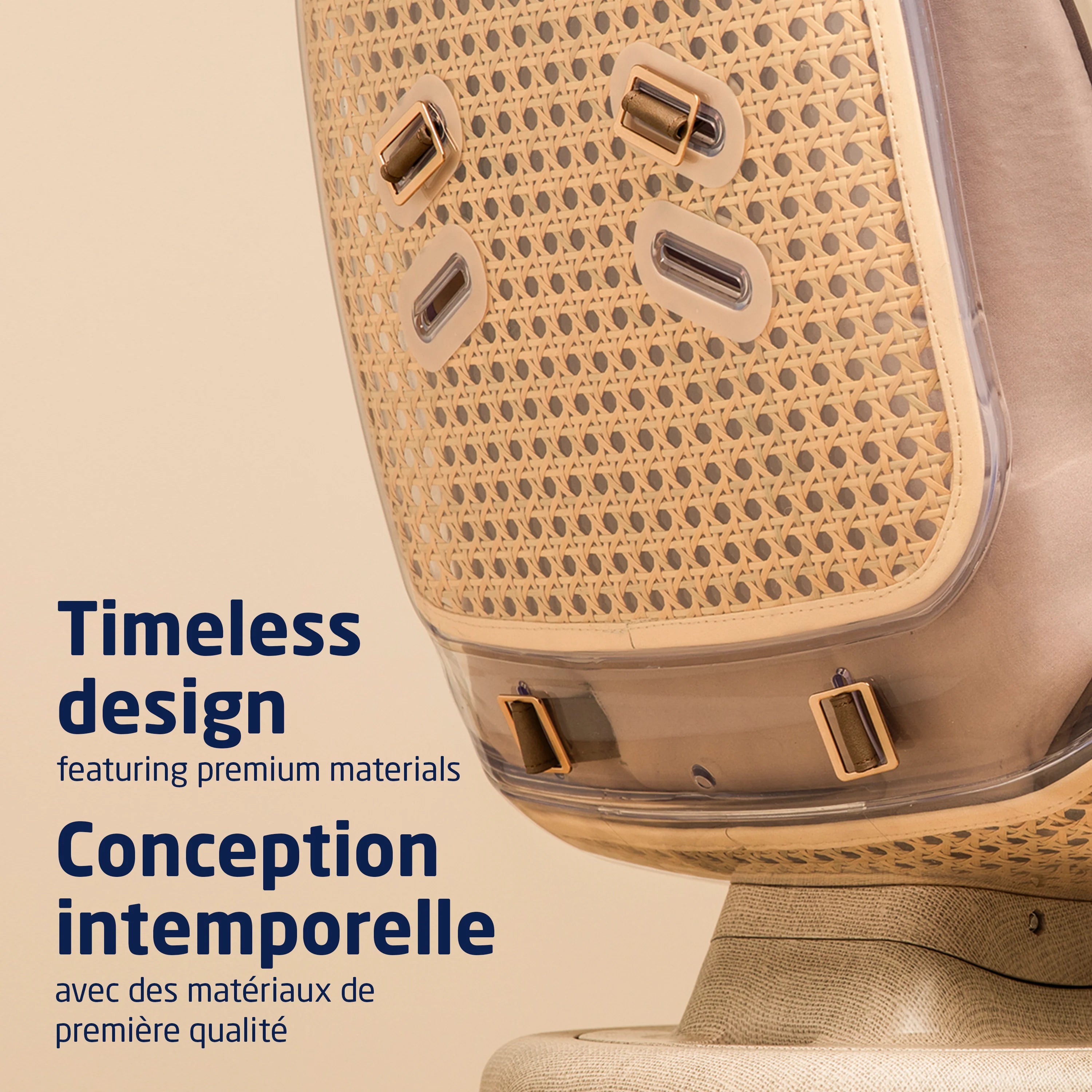 Part of the Maxi-Cosi Kindred Collection, Kiskadee blends timeless design with premium materials to complement your home décor. Crafted with luxe EcoCare fabric—a soft, breathable, 100% recycled material—along with elegant ash wood legs and refined metal finishes, it offers both style and sustainability.