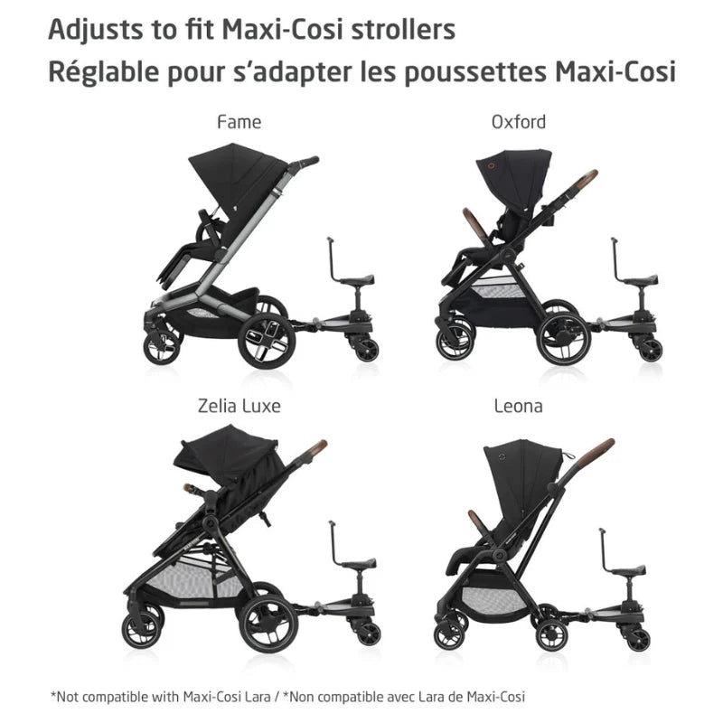 The Maxi-Cosi Hop-on Board makes going out with your two children a breeze. Easily attach it to your Maxi-Cosi stroller and let your child have fun while his or her little brother or sister relaxes in the stroller.