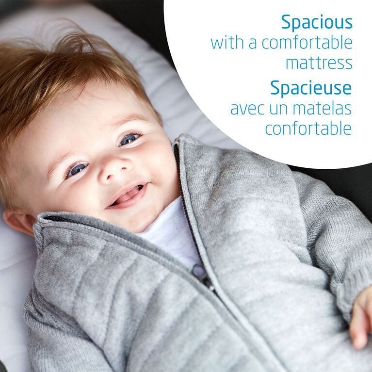 The Oria is spacious, has an ergonomic mattress and can easily be taken on and off the stroller thanks to its lightweight frame and integrated carry handle. Perfect for a comfortable ride, Oria provides your little one with a spacious and comfy lay flat space so they can stretch out wherever you go. The boot cover and canopy protect baby from bright sunshine or rainy days. The simple 2-click system allows you to smoothly attach the Oria to a Maxi-Cosi Lila or Lila CP stroller frame. The Oria can fold flat for easy storage. This product is not intended for sleep. To be used with a stroller only.