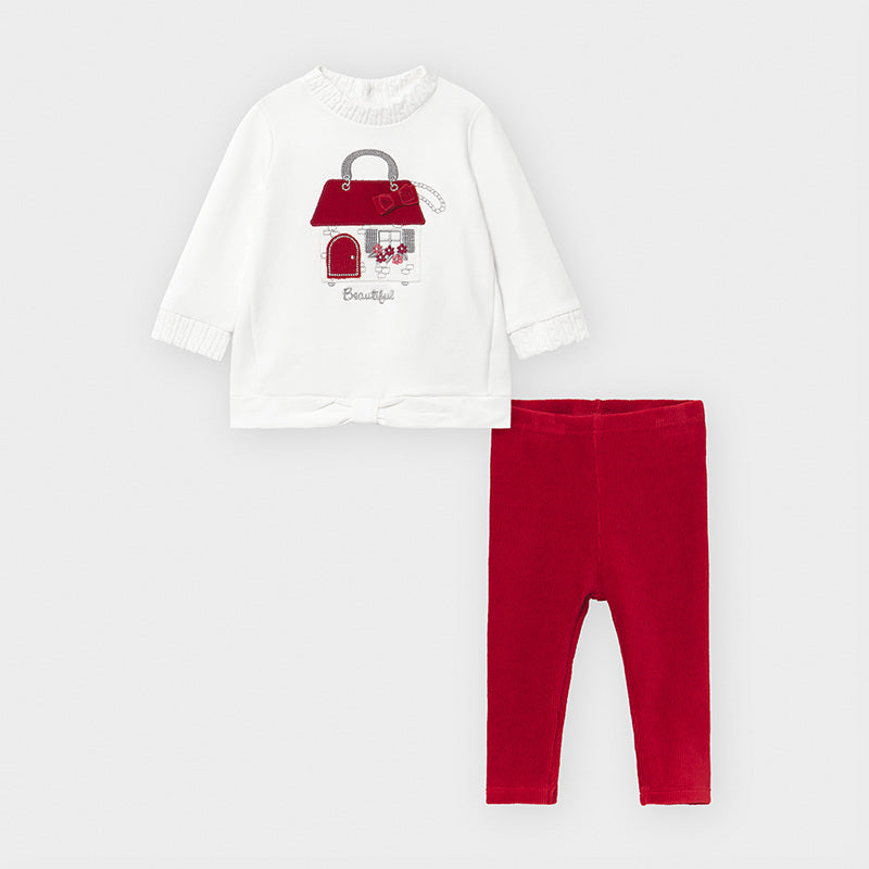 Mayoral Leggings set with house design 2786 - Carmin House / 36m is backordered and will ship as soon as it is back in stock.
