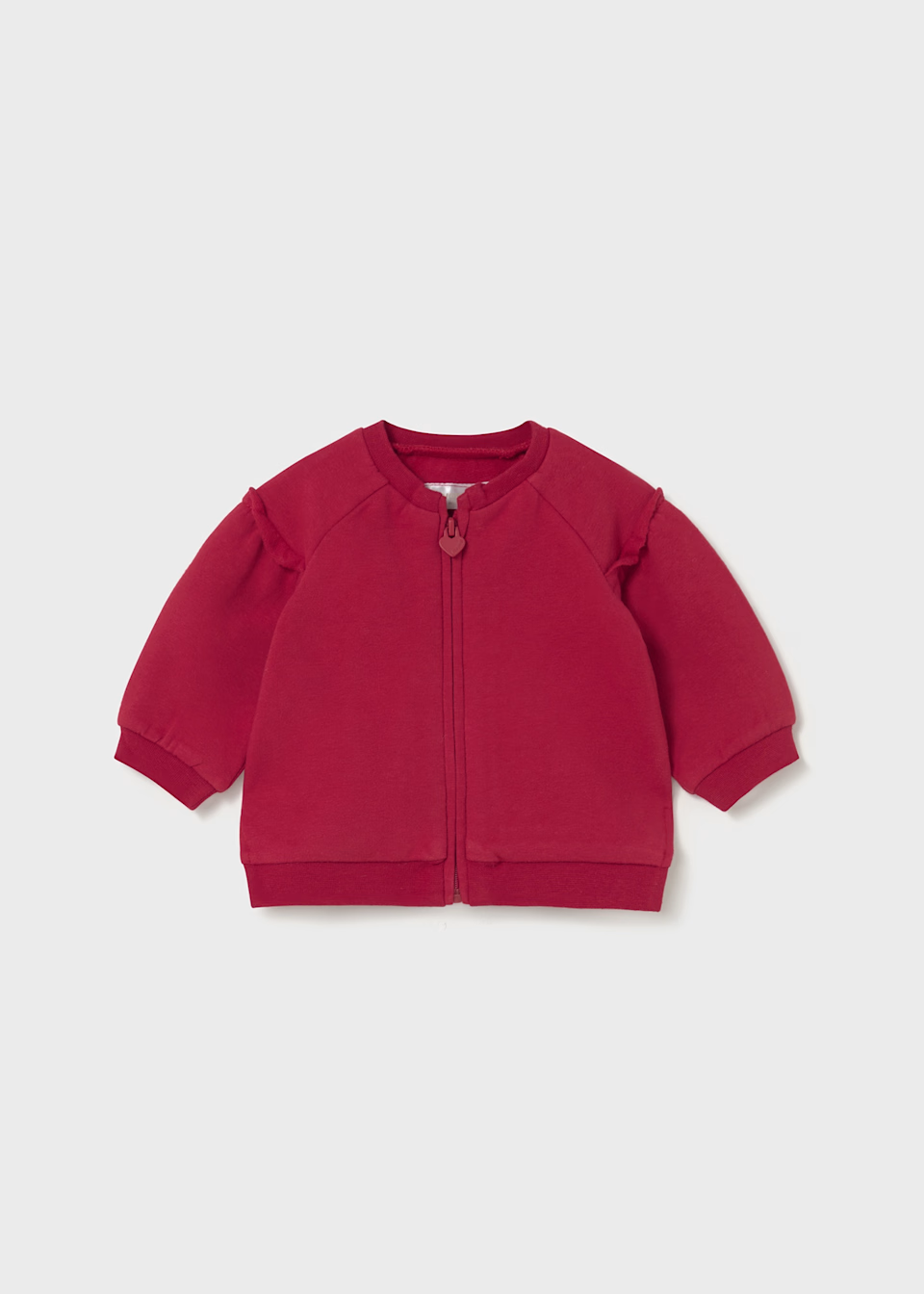 Long sleeve hoodie for newborn baby boy. Front, central zip fastening. Decorative elements: Ribbed detailing.