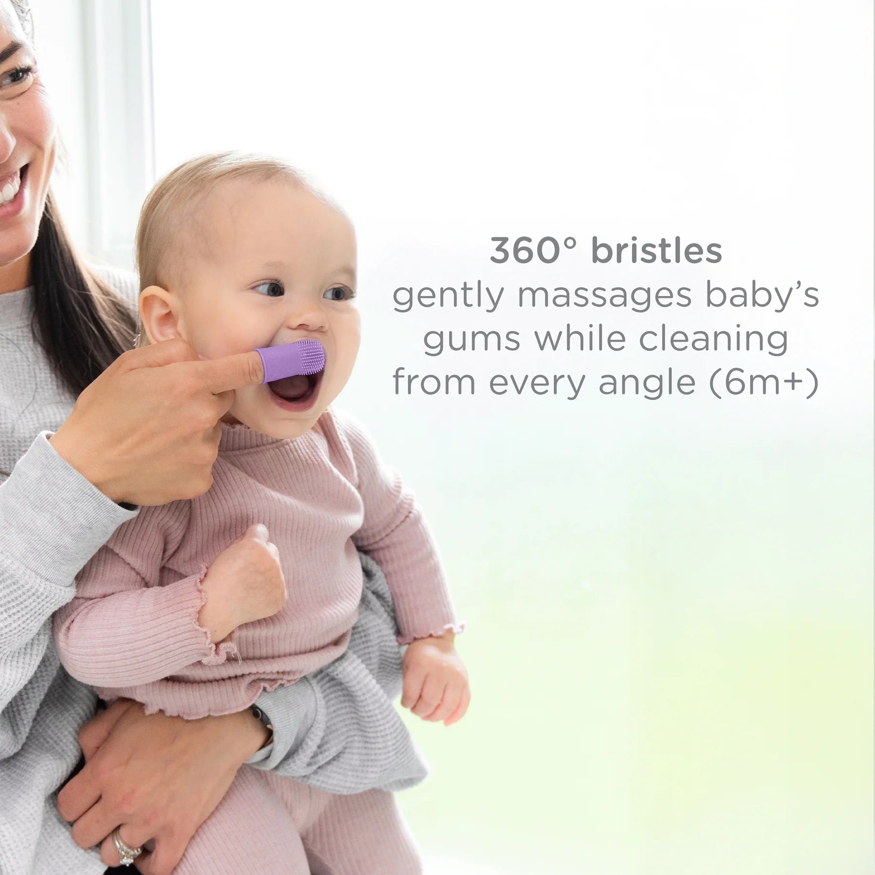 gently massages baby’s gums while cleaning from every angle (6m+)