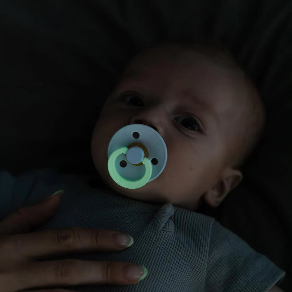 Meet the iconic pacifier that BIBS was built on - a timeless favorite bringing comfort and joy to babies for over 40 years. Featuring a glow-in-the-dark effect, illuminating late-night pacifier hunts when time is of the essence.