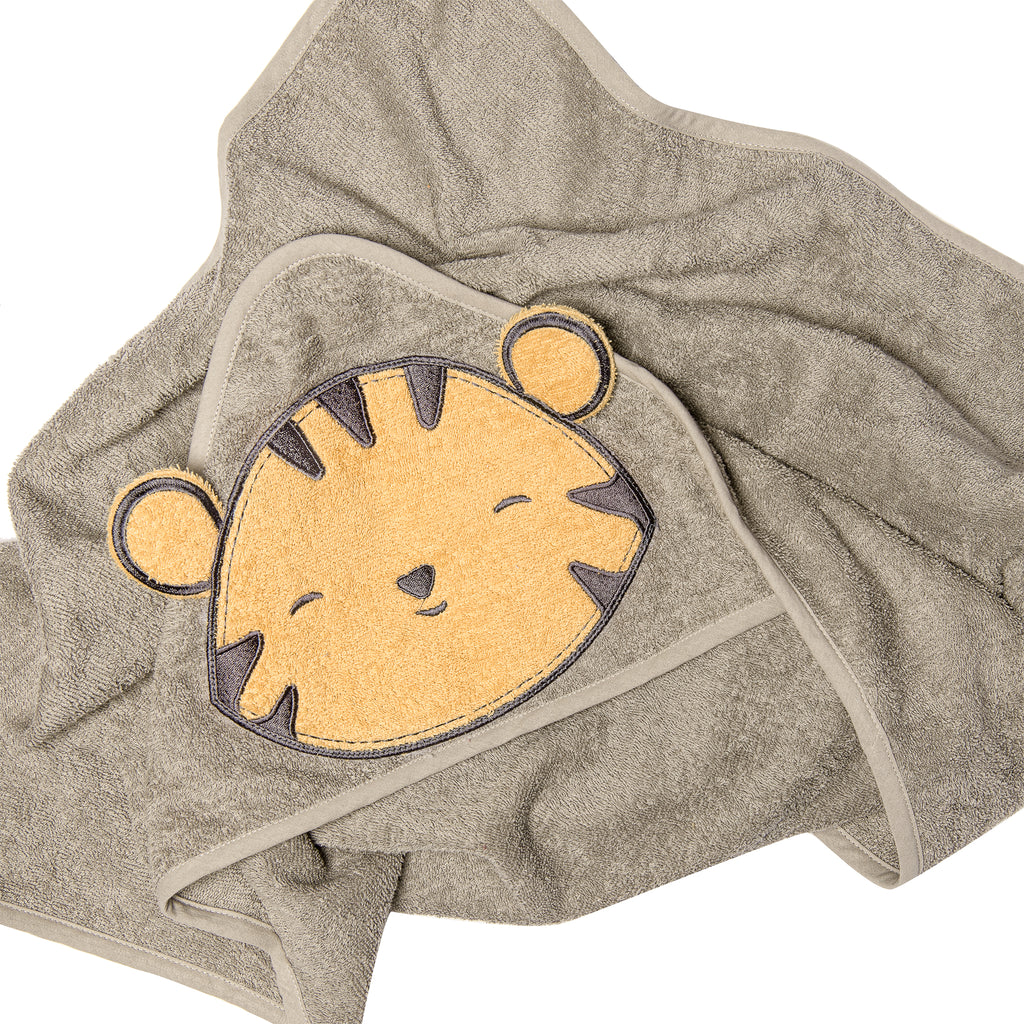 Perlim Pin Pin Hooded Towel - Tiger - Taupe is backordered and will ship as soon as it is back in stock.