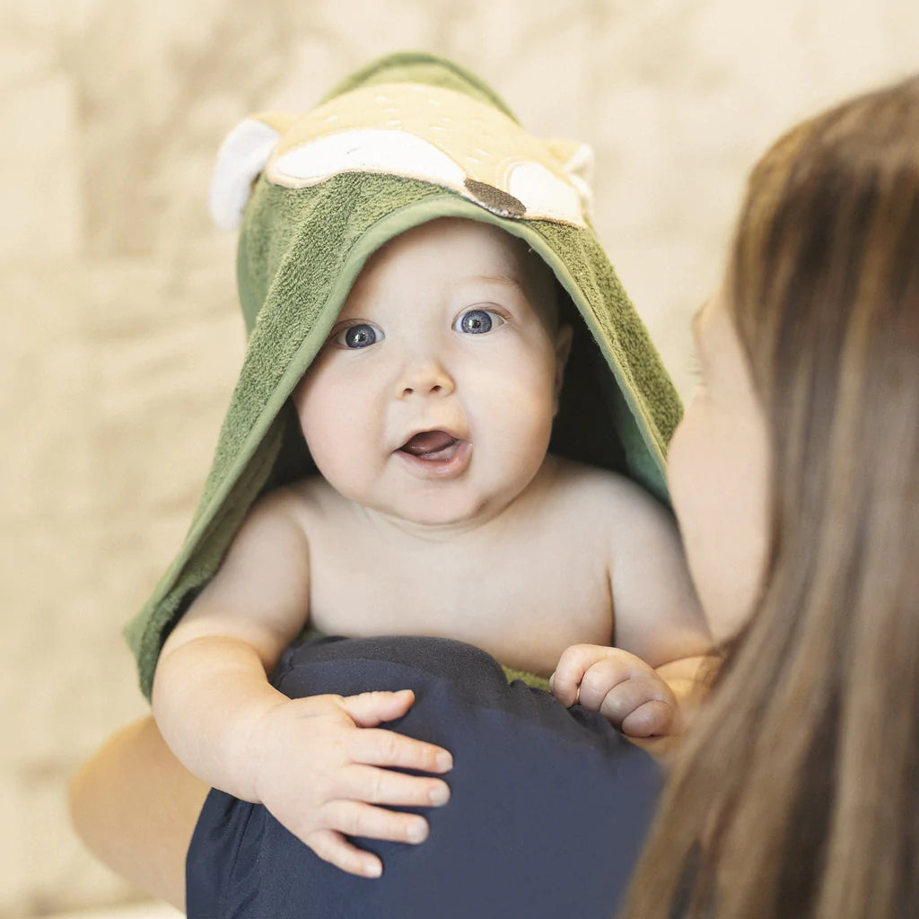 Super absorbent, this hooded towel will give your little baby one more reason to love bathtime! Cozy and comforting it will keep your little bunddle of joy warm and dry.