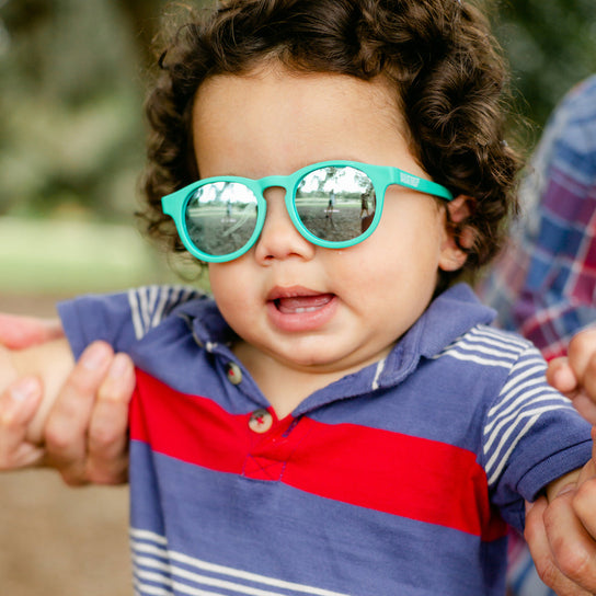 With a sleek round shape and extra-cool mirrored lenses, our polarized Keyhole shades will up the awesome factor (and, shh, the UV protection!) of your kid’s ensemble. Babiators’ award-winning sunglasses for children protect against 100% of UV rays (and boring style) and are virtually indestructible. Blue Series Keyholes come in three sizes that fit babies, toddlers, and kids aged 3 months to 6+ years.