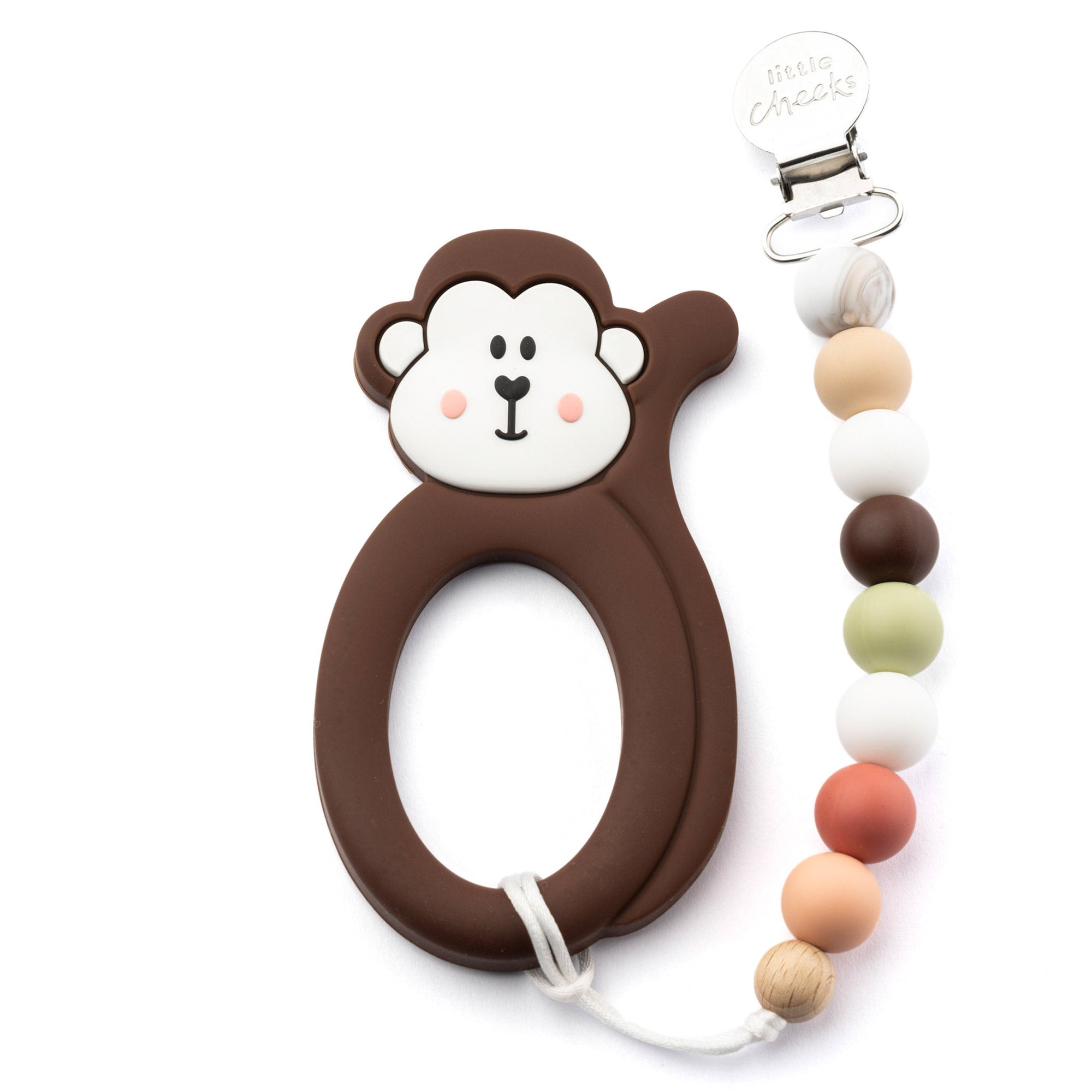 These adorable Monkeys were drawn and designed exclusively by us. Their hollow design makes them easy for little hands to grab, and their smooth and textured surfaces provide added relief for your baby's gums. We have added a stainless-steel clip to these teethers, helping to keep them in place and preventing them from falling on the ground. Beads and teethers are made using 100% food grade silicone. They are non-toxic, which means no BPA, lead, PVC or phthalates. SAFETY CERTIFIED (CCPSA & ASTM F963-17).