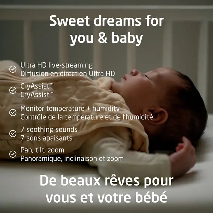 Stay connected to your child, even when you’re apart, with the See Pro 360° Baby Monitor from Maxi-Cosi. The See Pro 360 features groundbreaking CryAssist™ technology, which translates your little one’s cries using AI so you’ll know if they are sleepy, fussy, gassy, agitated, or hungry. Your little one is communicating with you, and with CryAssist, now you’ll know what they are saying.