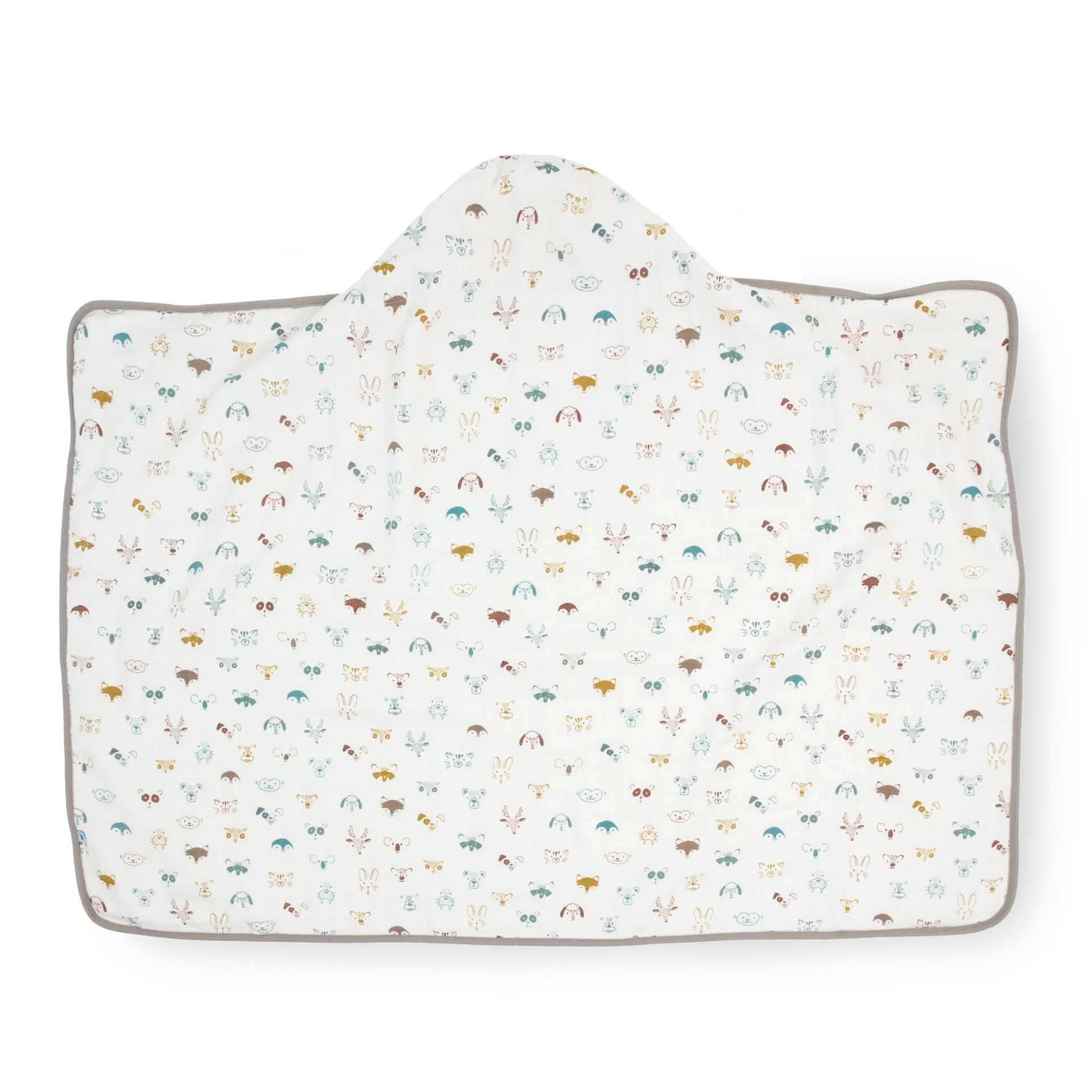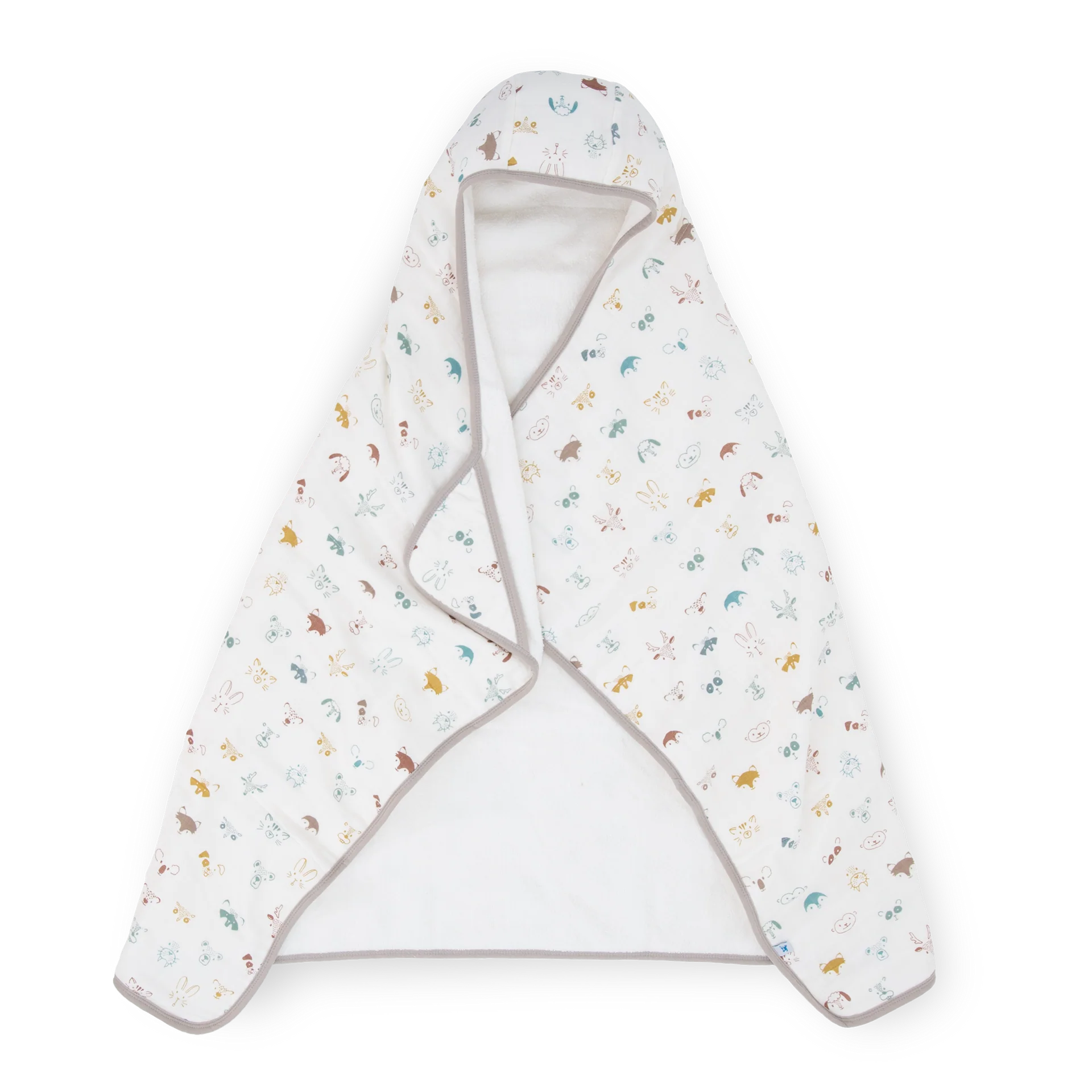 Splash into bath time with a plush and absorbent hooded towel. Featuring a cozy hood and pockets for little hands, the hooded towel is crafted with printed muslin on the outside and ultra-soft terry cloth on the inside.