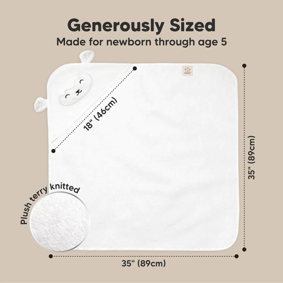 Made with premium quality 500 GSM fabric and sized large at 35" by 35", our baby hooded towel is the perfect baby bath essential for newborns up to age 6. This ultra soft and highly absorbent hooded towel is suitable for all skin types, even sensitive skin. Every set comes with a cute hood, which is great for covering your baby's head after a nice warm bath.