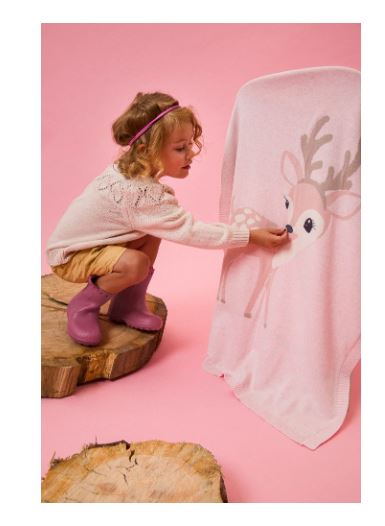 Felicity Fawn - Stunning blush marl knitted cotton blanket featuring Felicity Fawn, is the perfect baby blanket for out and about or cuddles in doors. Made from the softest cotton knit, the blanket is the latest addition to the Bizzi Growin designer range of knitted blankets.