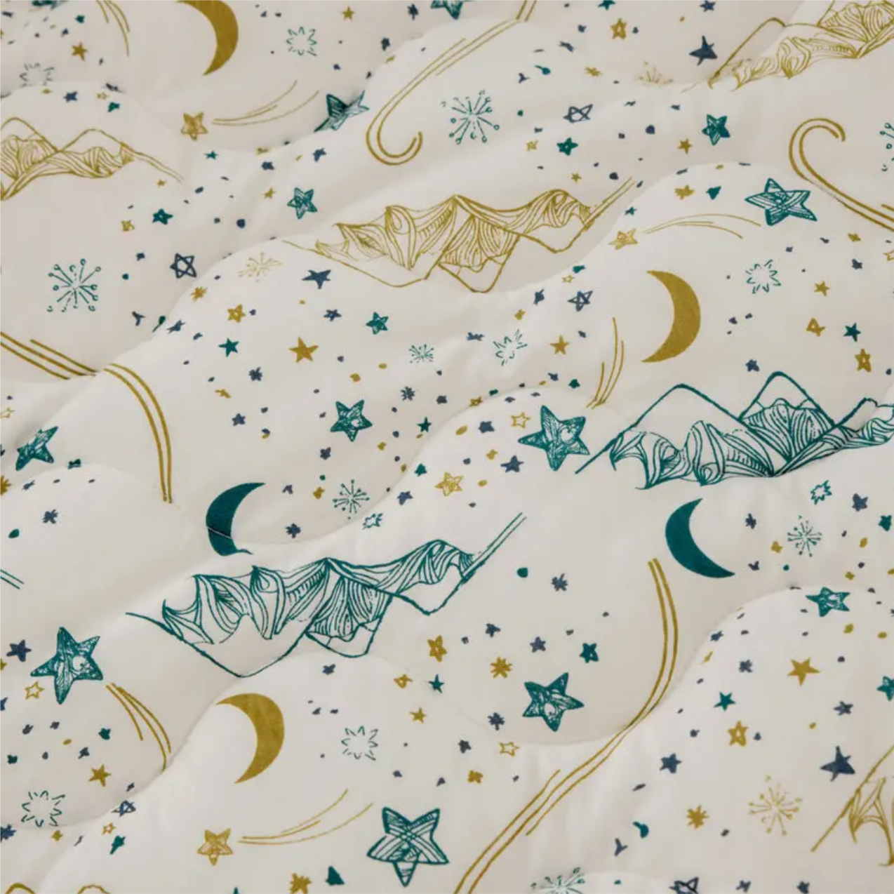 Our small cozy blanket has less Sorona fill so your little one snooze under a lighter layer in warmer temperatures. Perfect size for a crib or lap blanket.