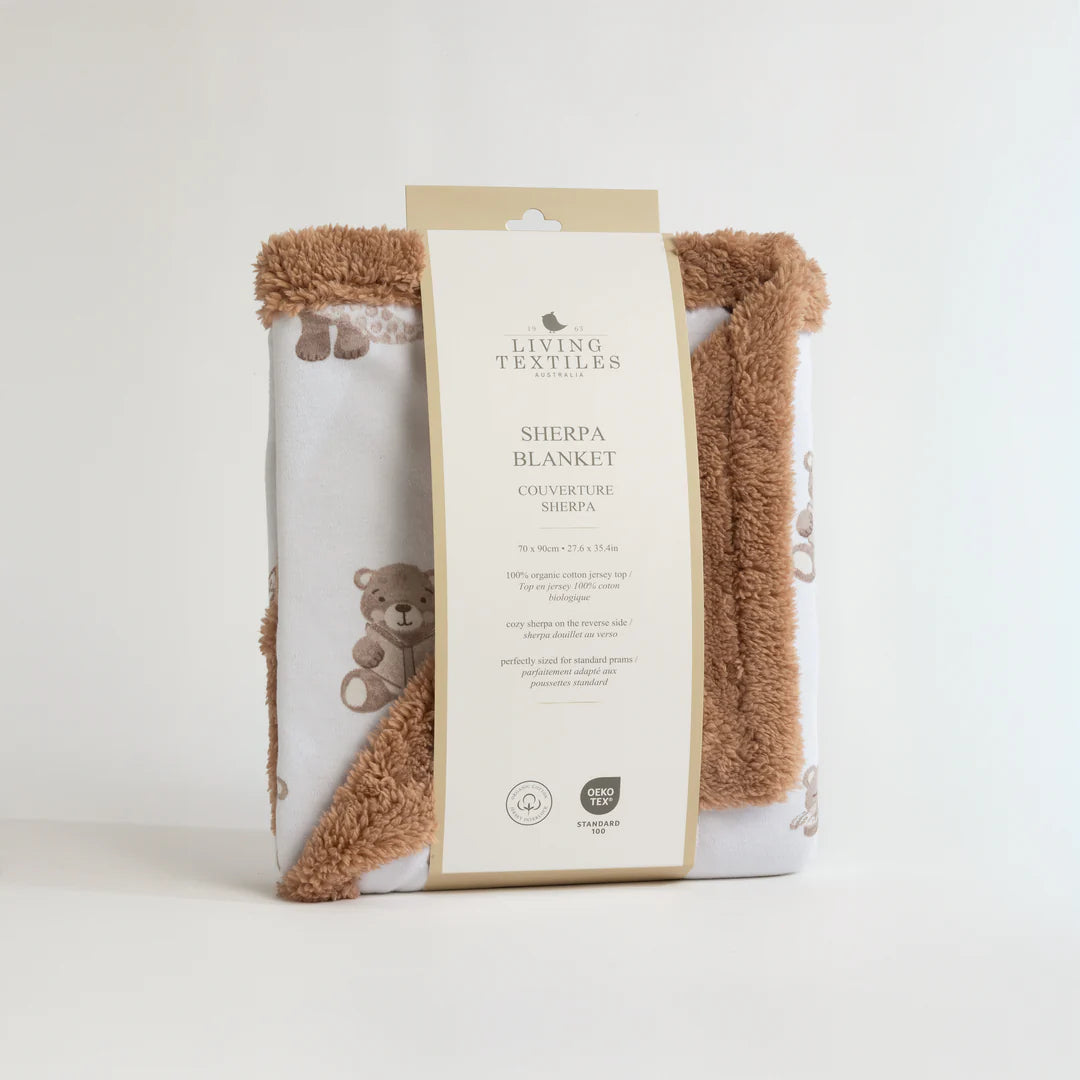 Made from 100% cotton jersey interlock and backed with the softest sherpa, this stroller blanket will keep your little one toasty warm when out and about.