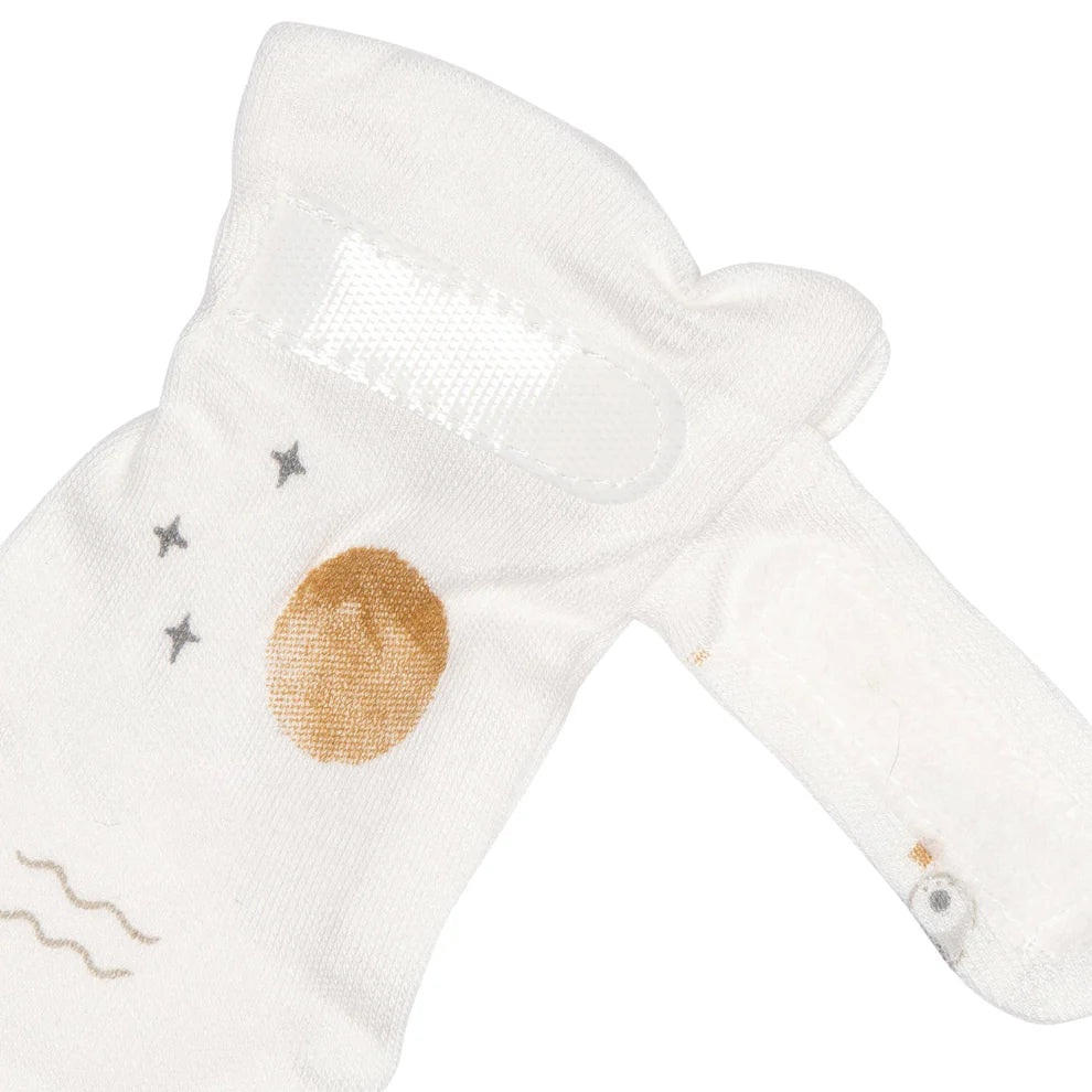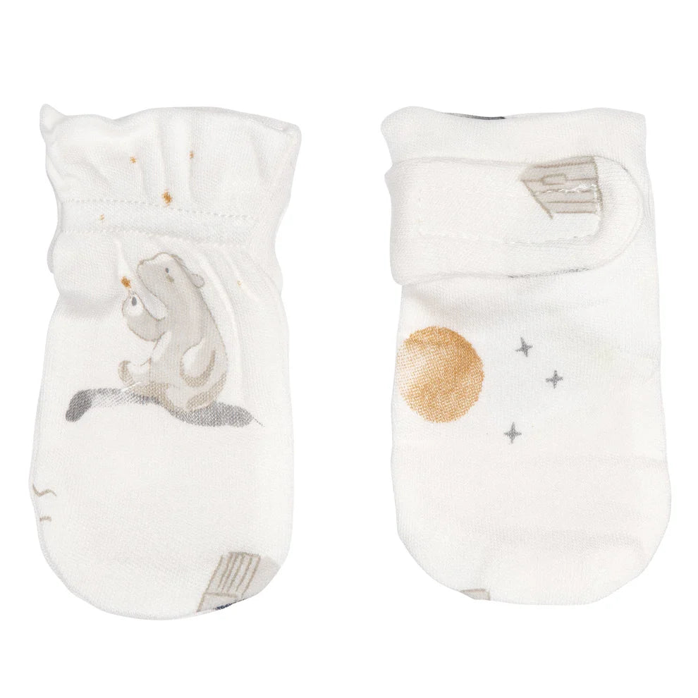 Protect baby's pretty face with these Perlimpinpin's scratch mittens. Made of viscose from bamboo, while protecting baby's cute face they will also keep his/her little hands mild. Fits approximately 0-3 months.