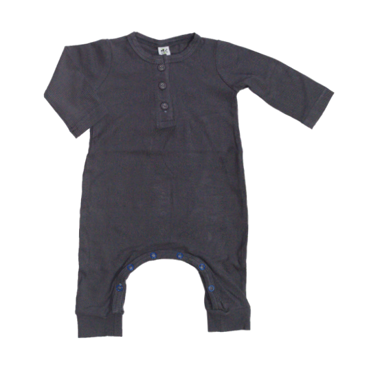 Bamboo Ribbed Henley long sleeve romper with three buttons and inner legs snaps for easy diaper changes. Made from buttery-soft lightweight ribbed knit fabric, which will allow your little babes to move easily. This basic romper will be a favorite in your little one's closet and can be worn any season!