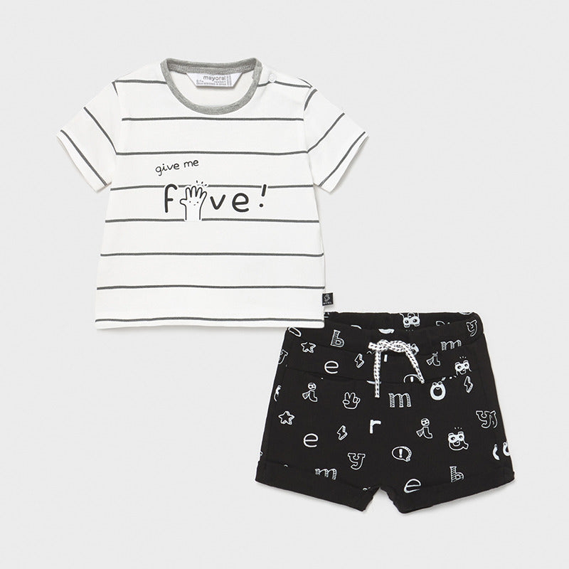 Matching t-shirt and shorts set for newborn. Made from soft elasticated cotton fabric.