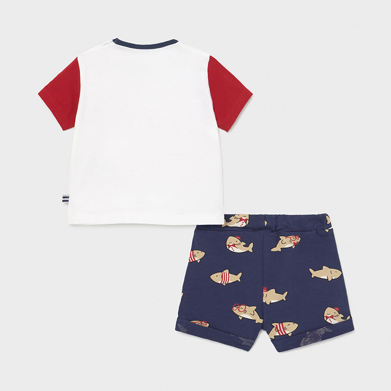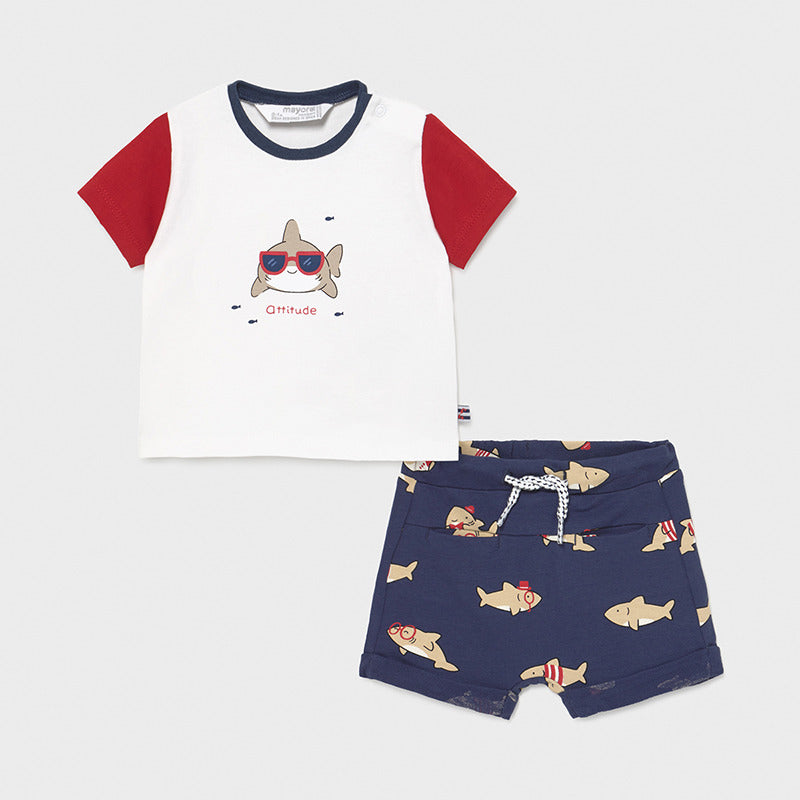 Matching t-shirt and shorts set for newborn boy. Made from soft elasticated cotton fabric.