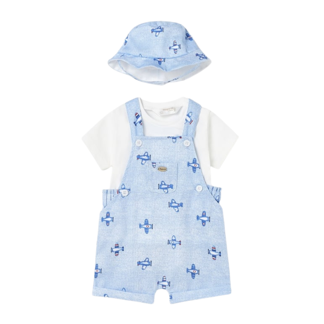 Mayoral Short Dungaree Set - Aviones / 6-9M is backordered and will ship as soon as it is back in stock.