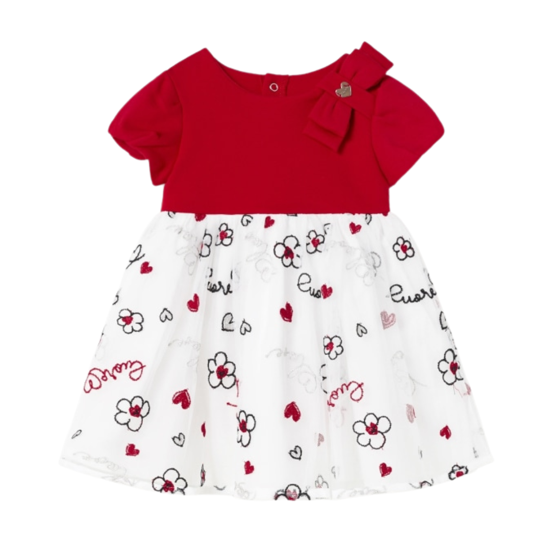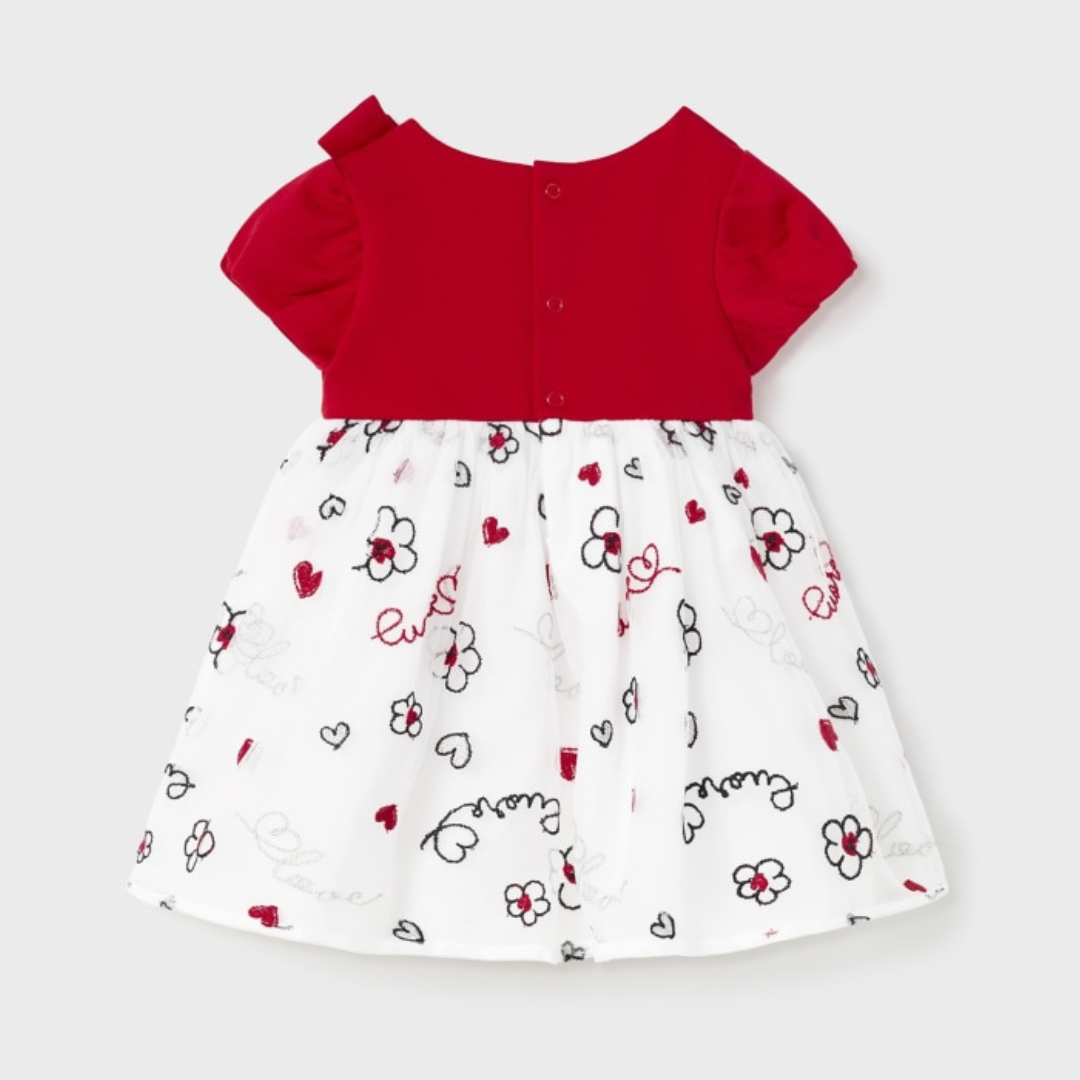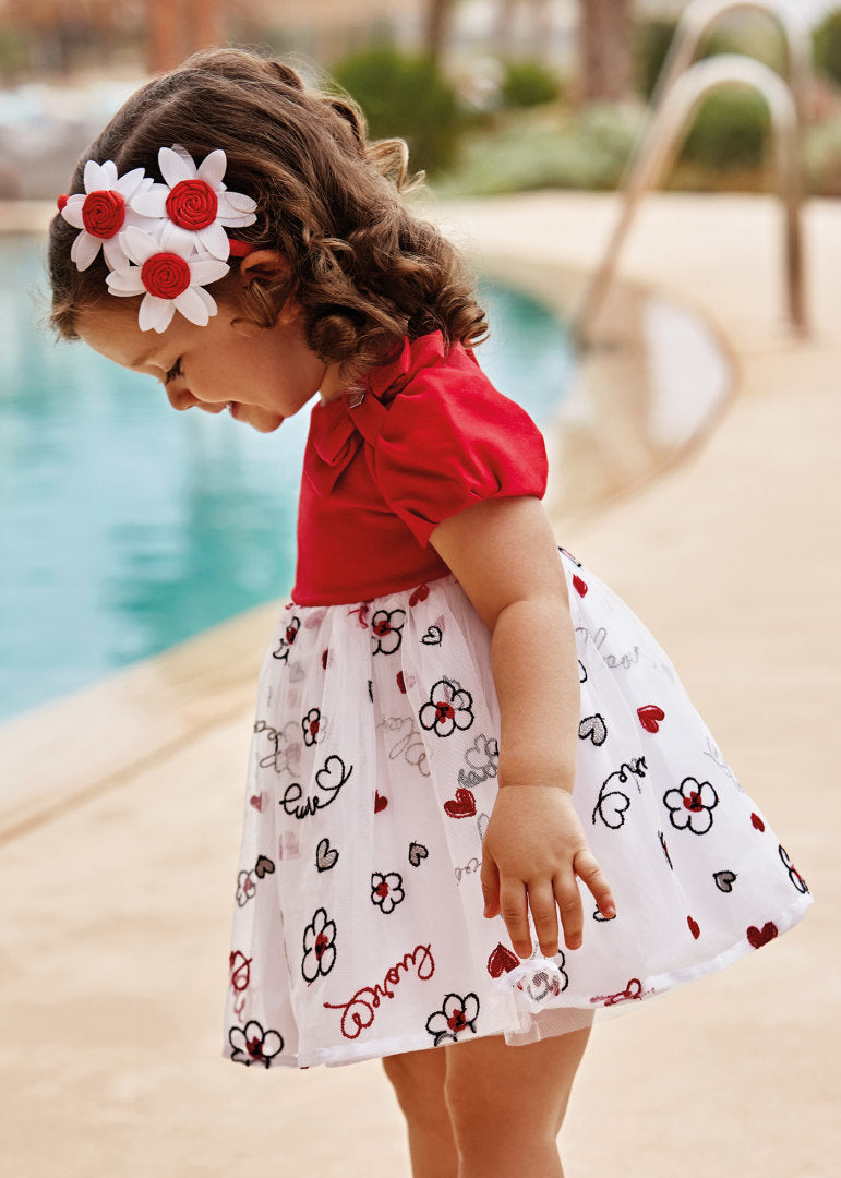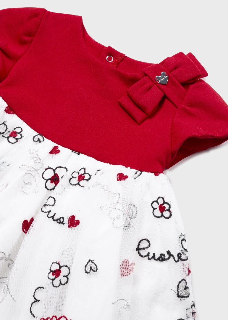 Mayoral Combined Embroidered Tulle Dress - Rojo - Rojo / 12m is backordered and will ship as soon as it is back in stock.