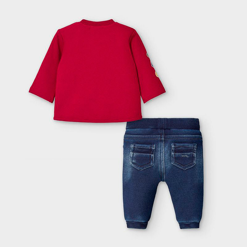 Mayoral Baby Sweatshirt and Denim Trousers set - Rojo Red 2572