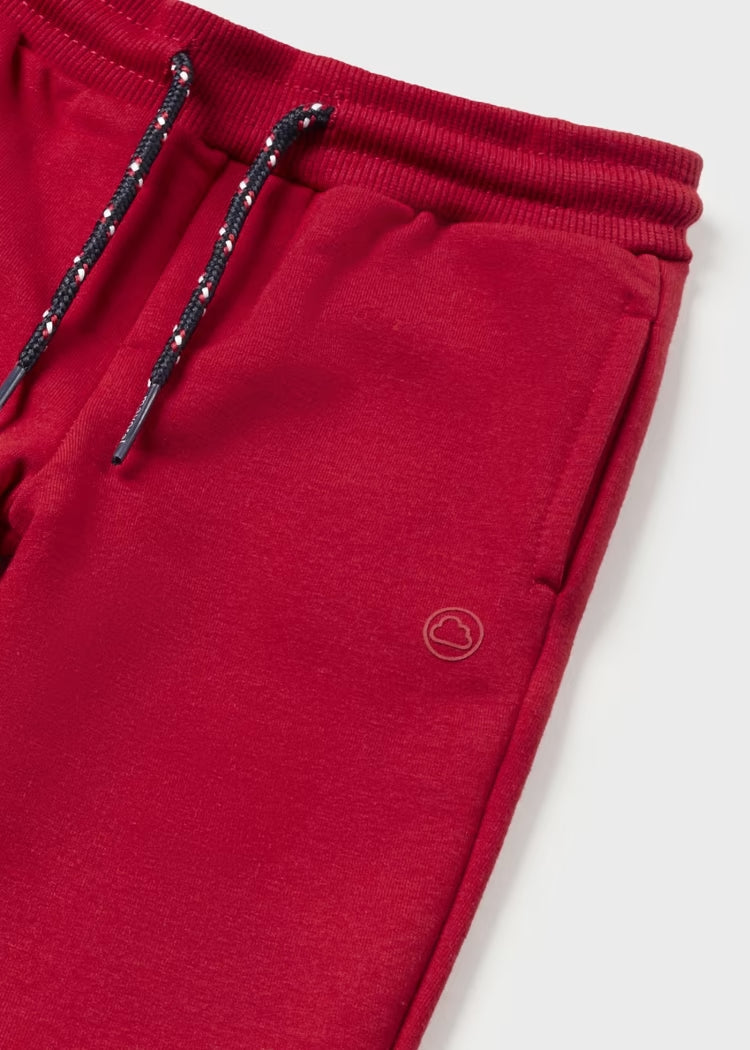 Jogger-style sweatpants for baby, loose at the top and narrower as it moves down towards the ankle. Elasticated waistband with adjustable drawstring. Knee pads reinforced on the inside to prevent damage in the area and offer greater resistance and durability. Sleek design.