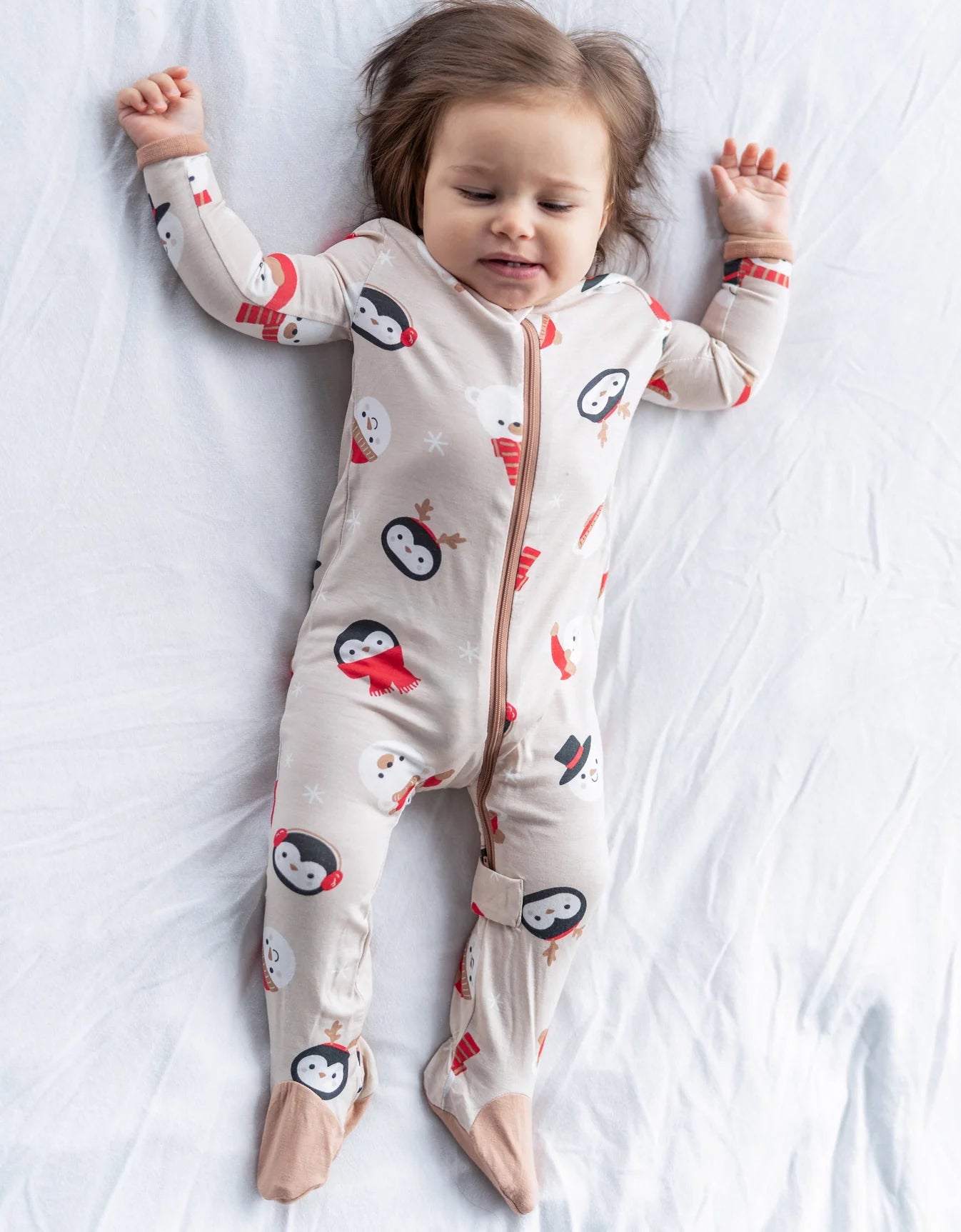 Silkberry Baby Footed Sleeper - Snowy Faces Print