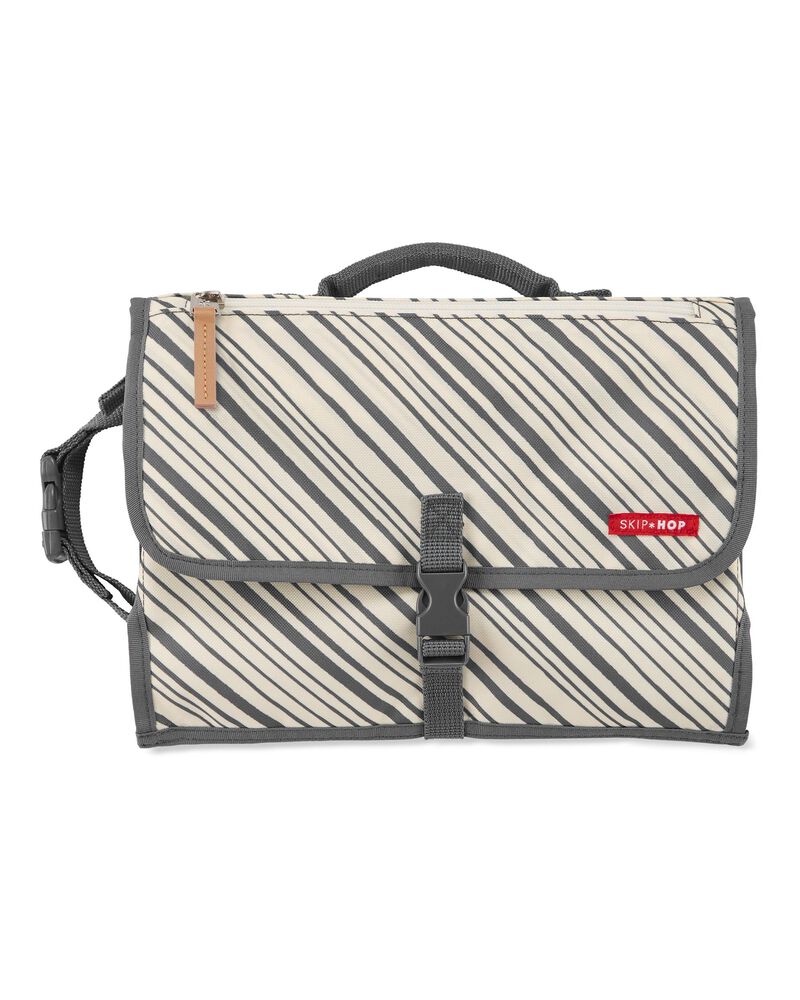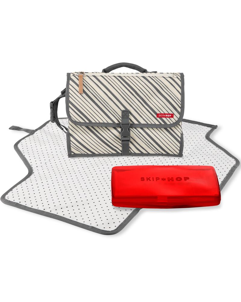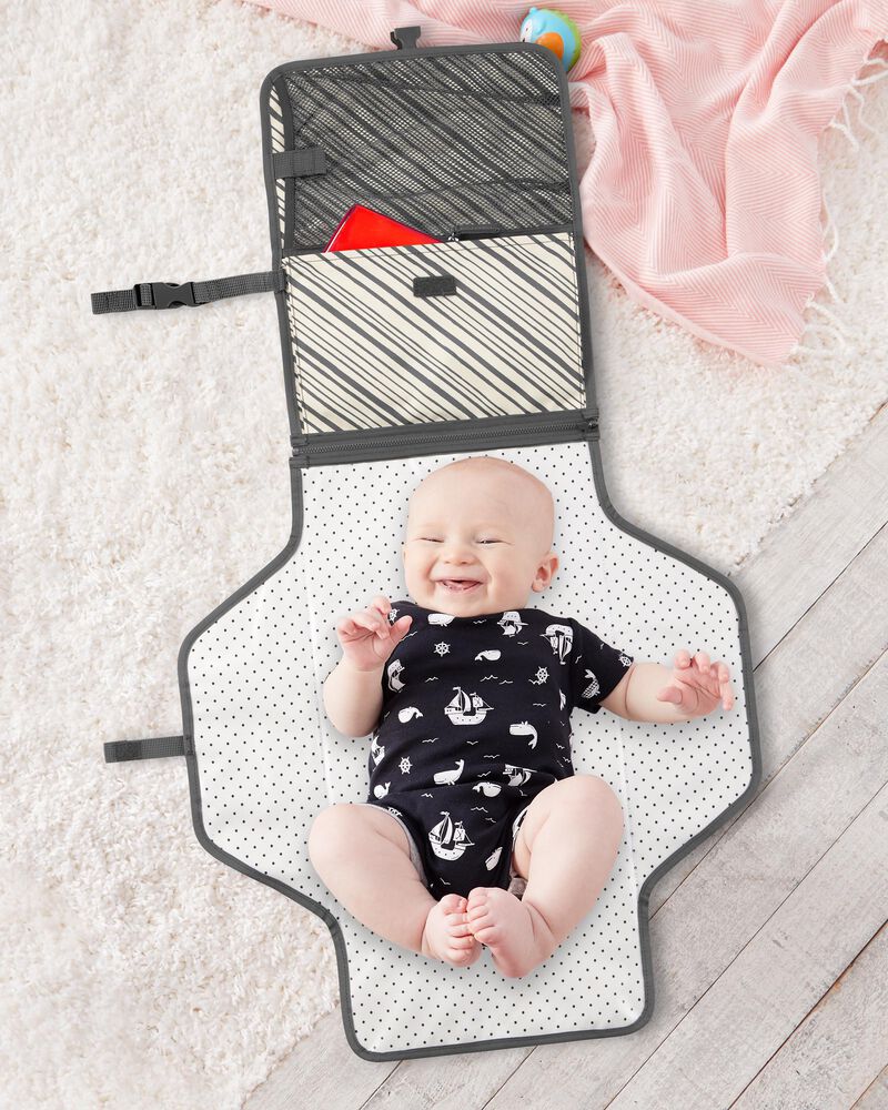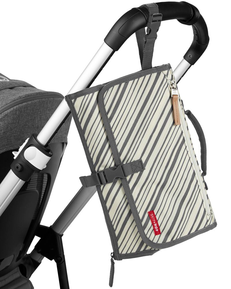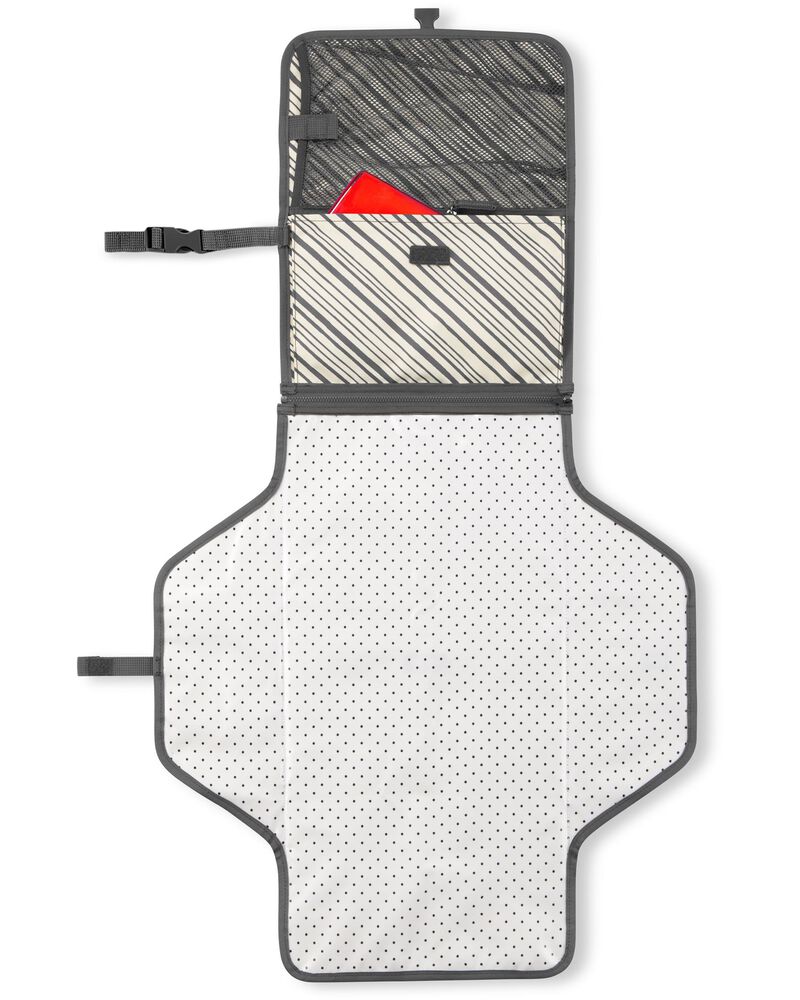 The ultimate diaper changing tool makes baby changing easy—no matter where you are. Our ultra-convenient clutch features a wipe-clean, zip-off changing pad and translucent wipes case for timely refills. The large mesh pocket holds up to four diapers plus creams and other essentials, while the front zippered pocket is perfect for keys, cell phone or other personal items. Simply drop the Pronto in your bag, strap it to your wrist or clip it to your stroller and go!