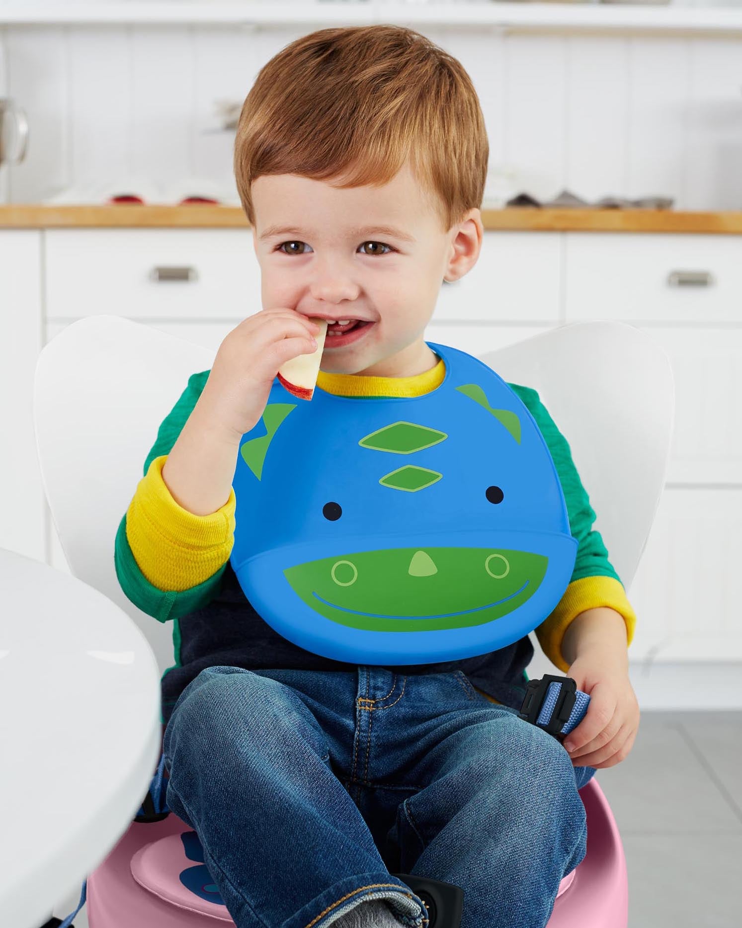 Most baby and toddler bibs get quickly stained and contribute to your laundry pile. Our Zoo Fold & Go Silicone Bib easily wipes down for quick cleanup. You can even pop it in the dishwasher! With a deep pocket to catch crumbs, it’s made of food-safe silicone and has an adjustable neck strap for baby’s comfort. Even better? The travel-ready design easily folds right into the pocket for on-the-go!