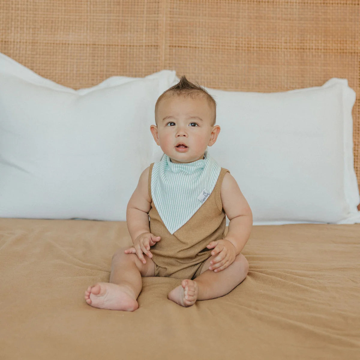 These stylish drool bibs are made of 100% absorbent cotton on the front and 100% polyester fleece on the back. The front of the baby bib is a stylish knit fabric and the back is a super soft fleece that keeps your baby completely dry even with the drooliest of babies. Great for teething babies!