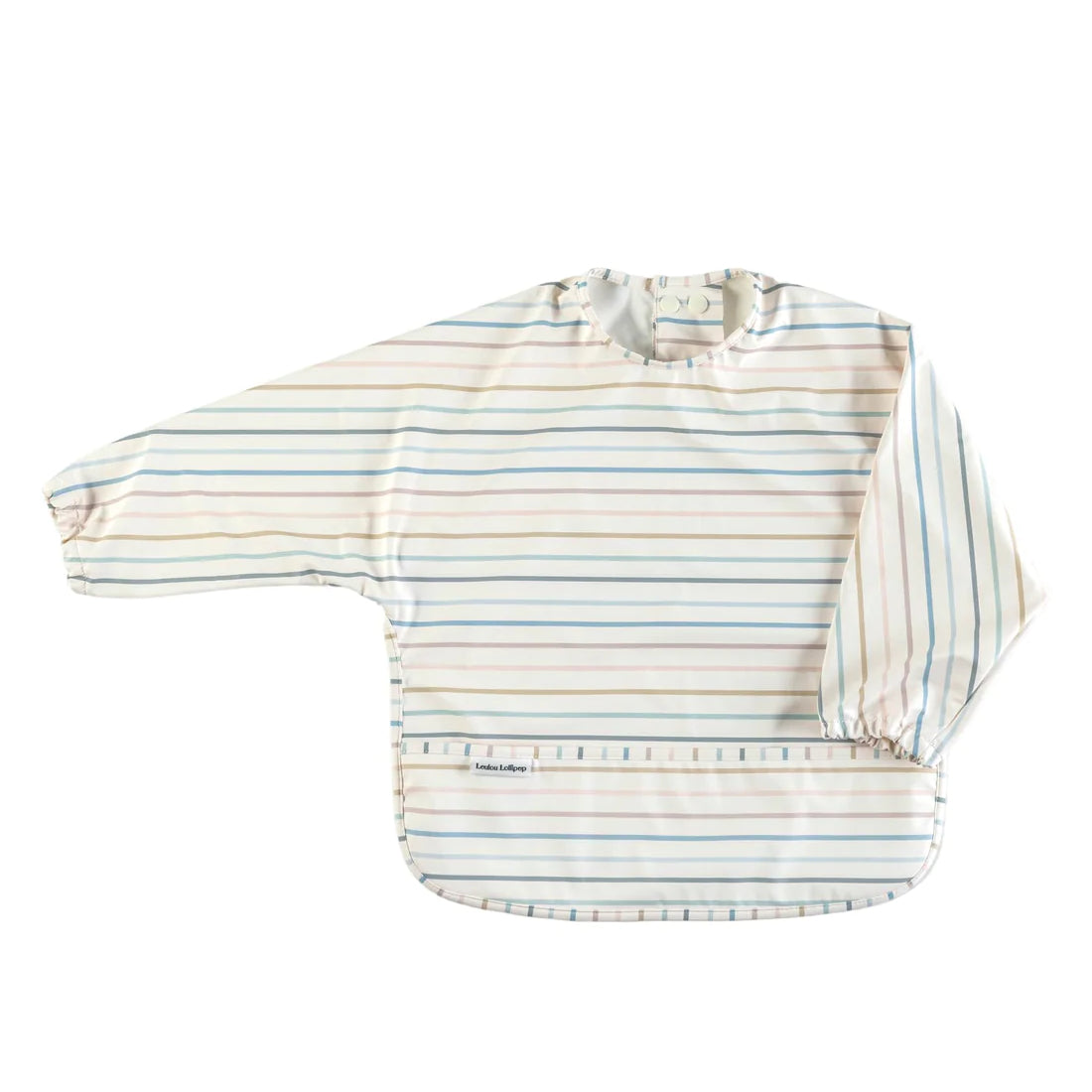 The long sleeve waterproof bib is made with 100% eco-friendly recycled polyester with TPU coating that is waterproof, stain, and odor resistant. Standard 100 by Oeko-tex certified. Designed with an adjustable neckline with snaps and elasticized cuffs allow for a comfortable fit that grows with baby to toddler from 6 months to 3 years old.