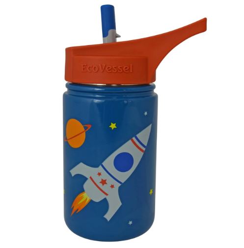 EcoVessel Scout Kids Stainless Steel Water Bottle with Flip Straw - 13oz - Rocketship SCT400BR