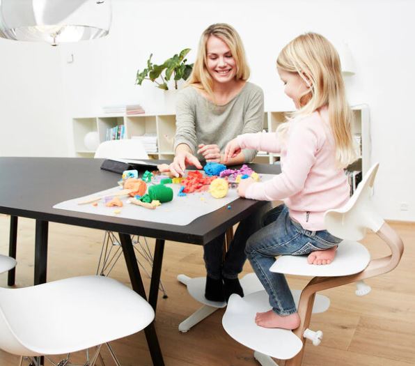 Scandinavian design by world-renowned seating expert Peter Opsvik, who spent his entire career studying what he calls "active sitting". His philosophy is that children need a stable platform for their feet from which to move - so the child will sit actively and varied - but stay seated.