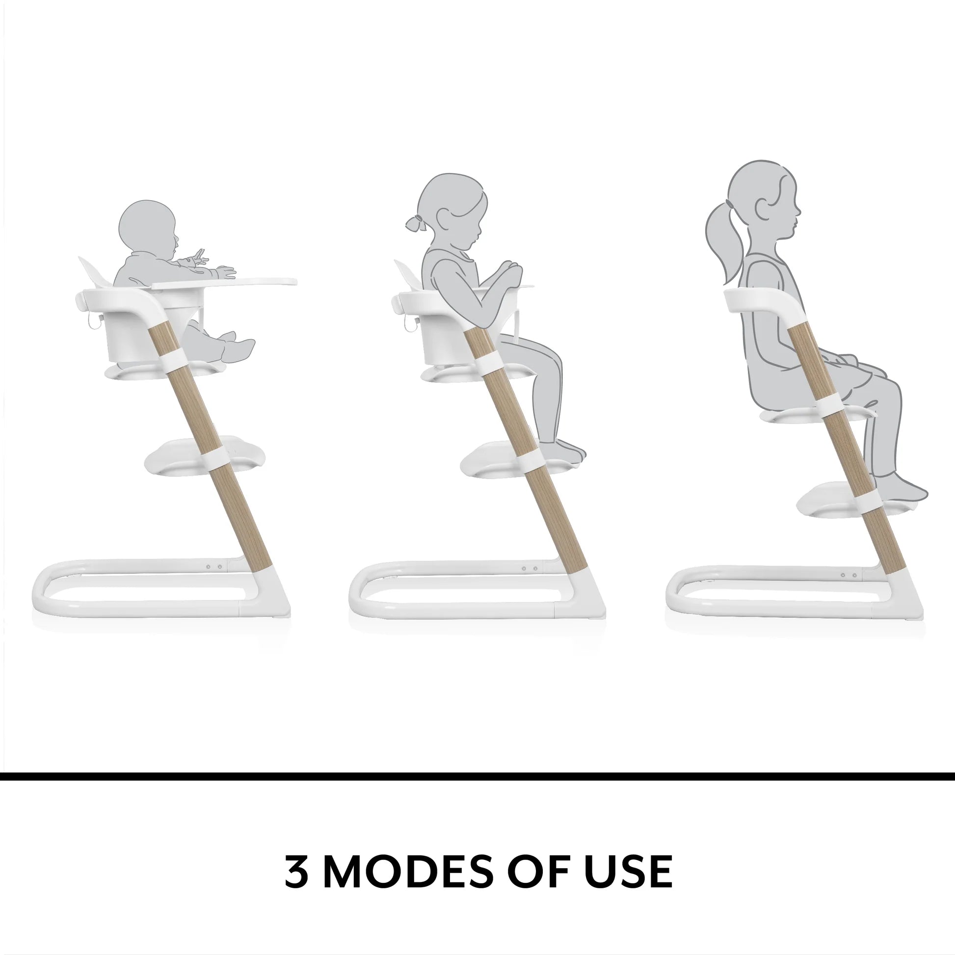 OFFERS EXTENDED USE: Grows with your child through 3 modes of use; 1) Infant Mode: Child sits and eats with tray attached in their own space, 2) Toddler Mode: Brings child up to the table for dining, 3) Youth Mode: For big kids who can sit on their own