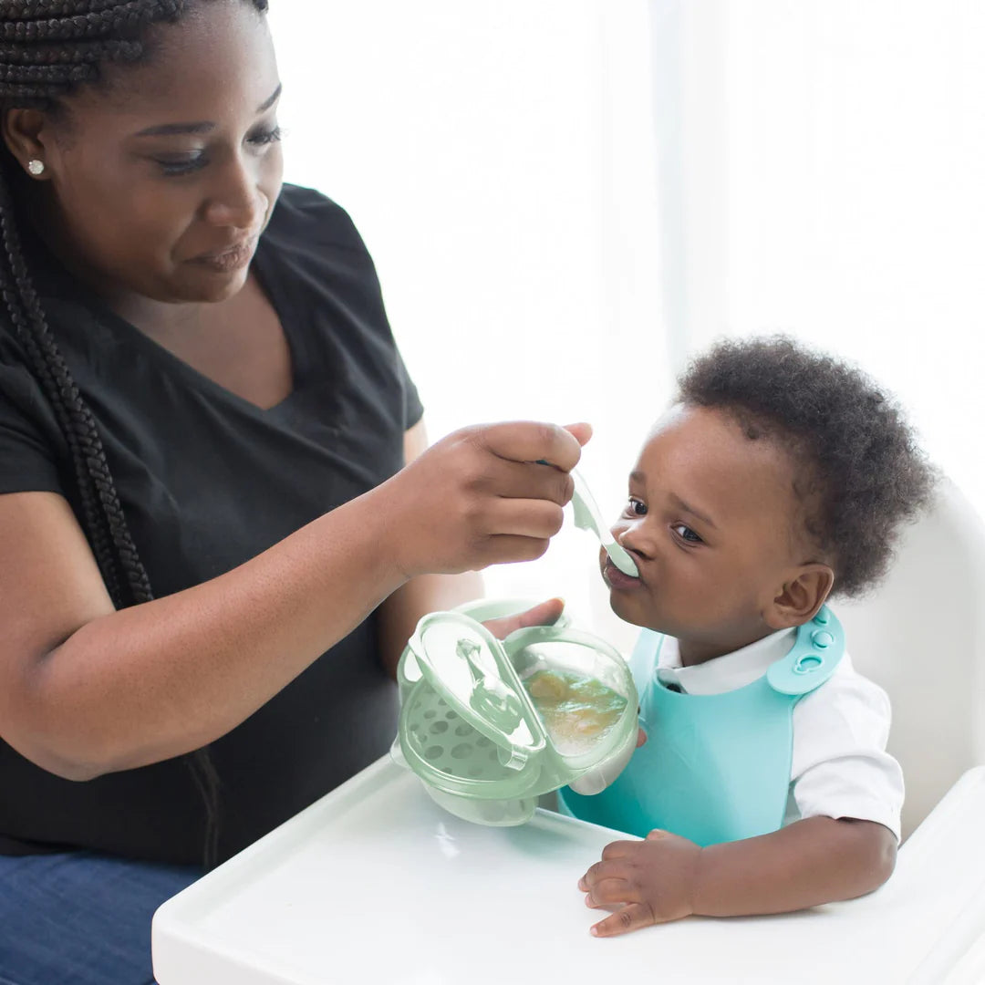 Keep your go-bag mess free when you and baby are eating on the move with the Travel Fresh™ Bowl and Spoon. The comfort-grip handle can be used with both hands, whichever one is free!