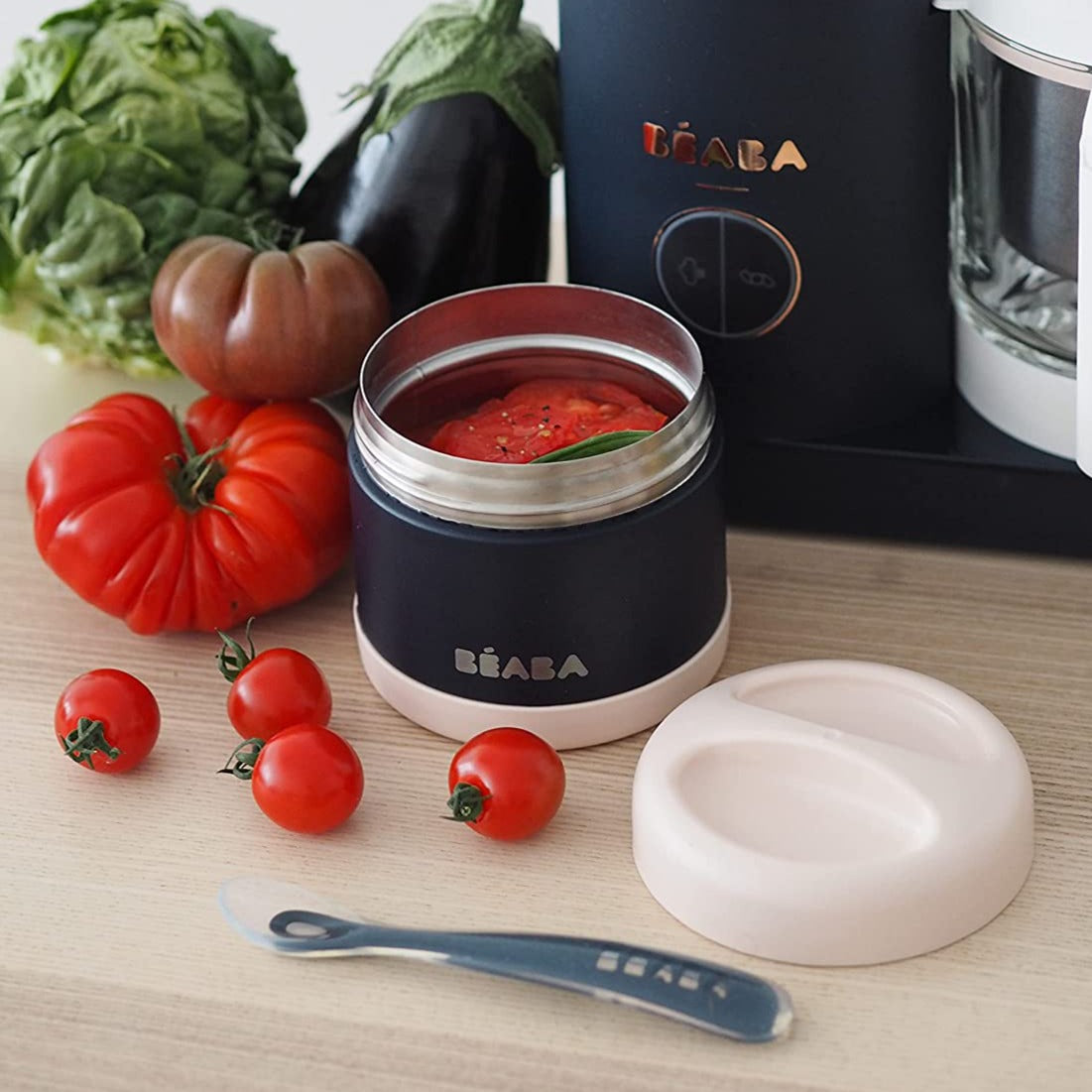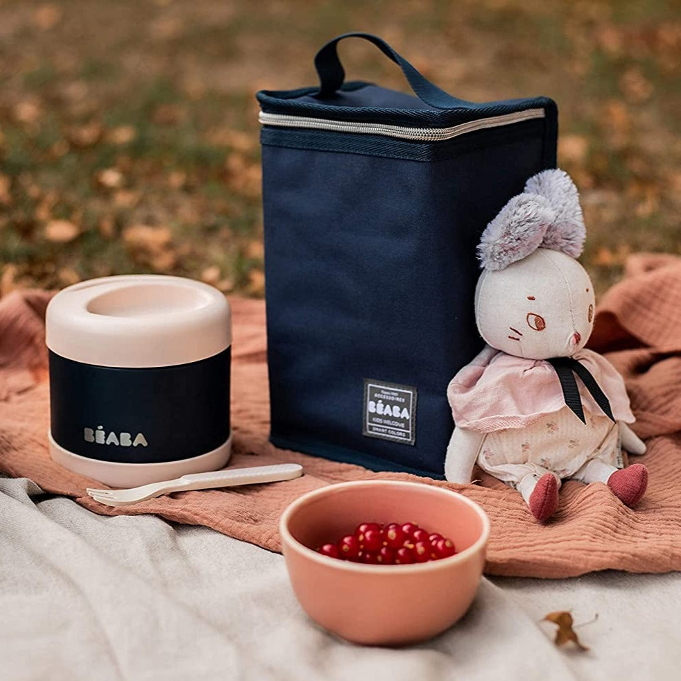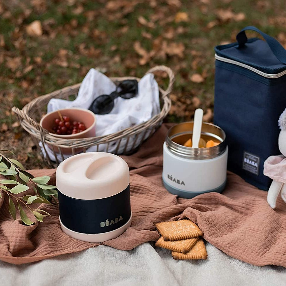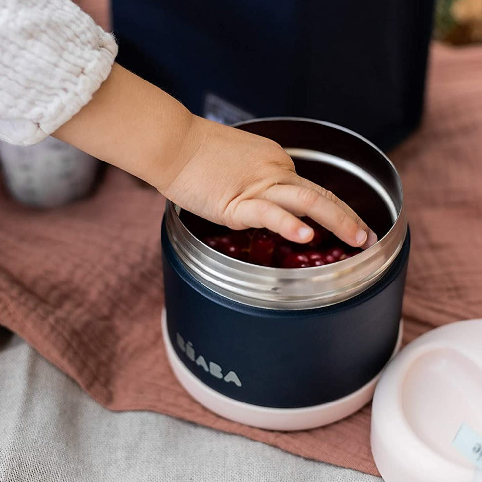 Parents, say hello to temperature controlled mealtime on the go. Whether at home or out and about for several hours, the Beaba Stainless Steel Insulated Jar 16 Oz Midnight is perfect for parents looking to keep mealtime more fun on family adventures. In double-walled stainless steel, this isothermal portion conserves meals for little ones and older ones at the right temperature, keeping them warm for 5 hours and cold for 7.