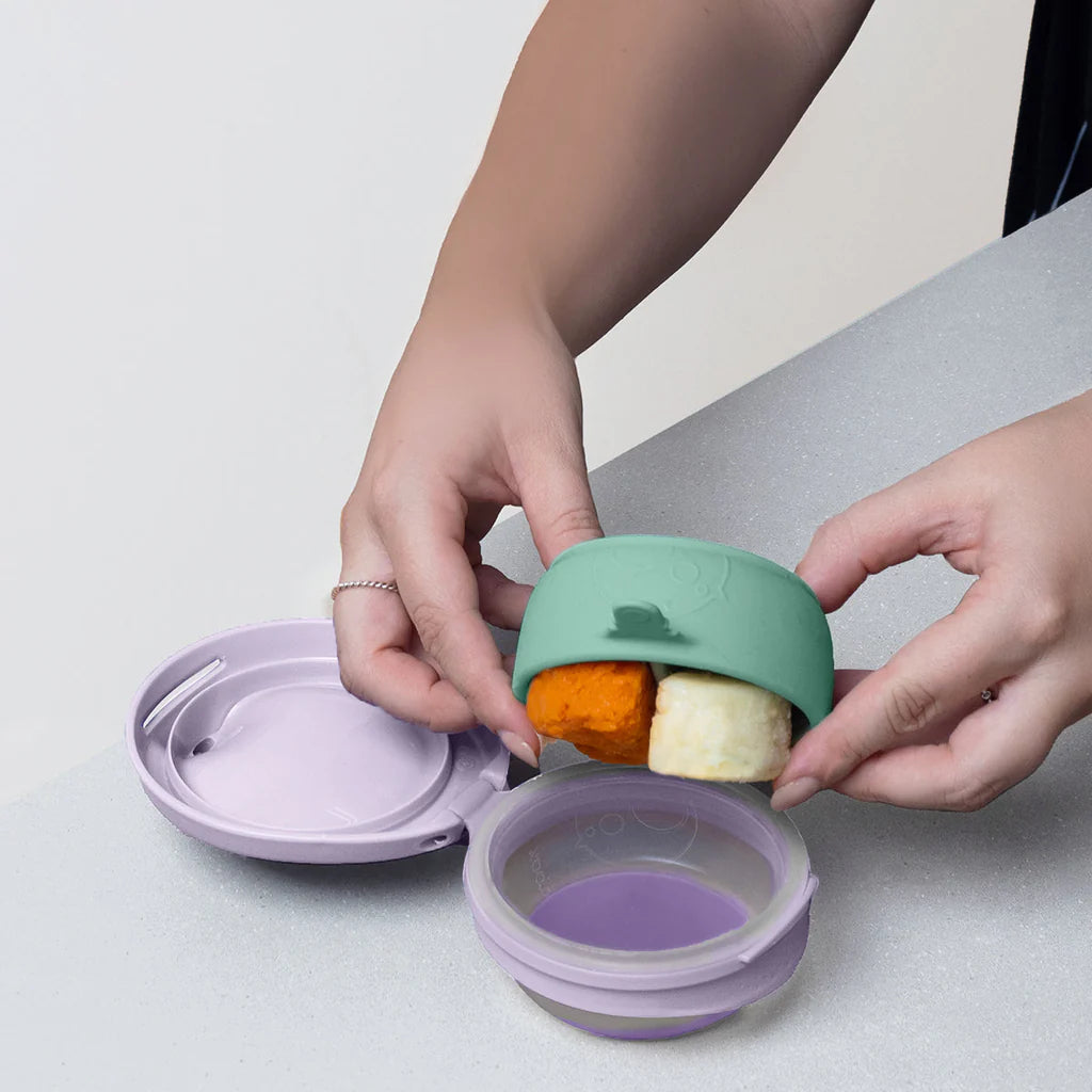 Prepare fresh baby and toddler food at home and take it on-the-go with our fill + feed reusable pouch. Ideal for pairing with the fill + freeze reusable storage bowls for even easier feeds! (sold separately). Our latest innovation in child feeding lets folks easily fill a silicone food pouch from a wide opening for less mess. Then close the hinged-lid and get ready to feed. Ergonomically shaped for little hands to easily hold and squeeze, then intuitively suck and sip from the silicone spout tip, yum! Or pair it with a silicone spoon for those early days of parent-led feeding. Ideal for mushy fruit or veg purees, yogurt, custard and more. The attached cap wonâ??t get lost, rotates so it won't get in the way of bub feeding and keeps the spout squeaky clean when out-and-about. Plus it seals closed and wonâ??t leak in baby bags or strollers. Completely disassembles for thorough cleaning, dishwasher and sterilizer safe.