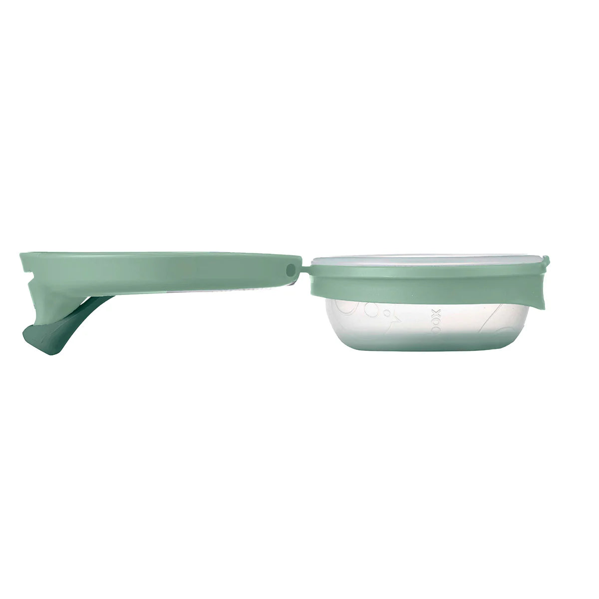 Prepare fresh baby and toddler food at home and take it on the go with our sage coloured, reusable fill + feed! Our latest innovation in child feeding lets folks easily fill a clear silicone food pouch from a wide opening for less mess. Then close the lid and get ready to feed!