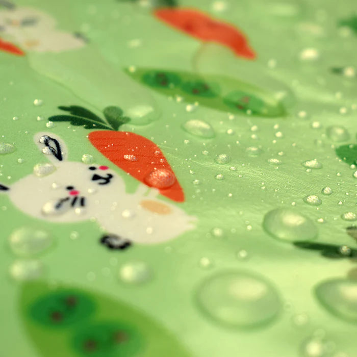 Bibetta Wipeezee XL Coverall Bib - Green Bunny & Veg - Bunny is backordered and will ship as soon as it is back in stock.