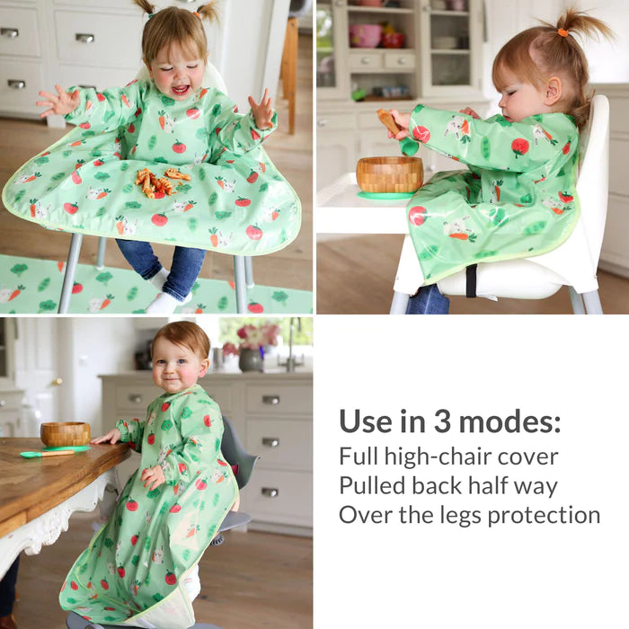 • The bib covers the child, their lap and the highchair or legs for maximum protection