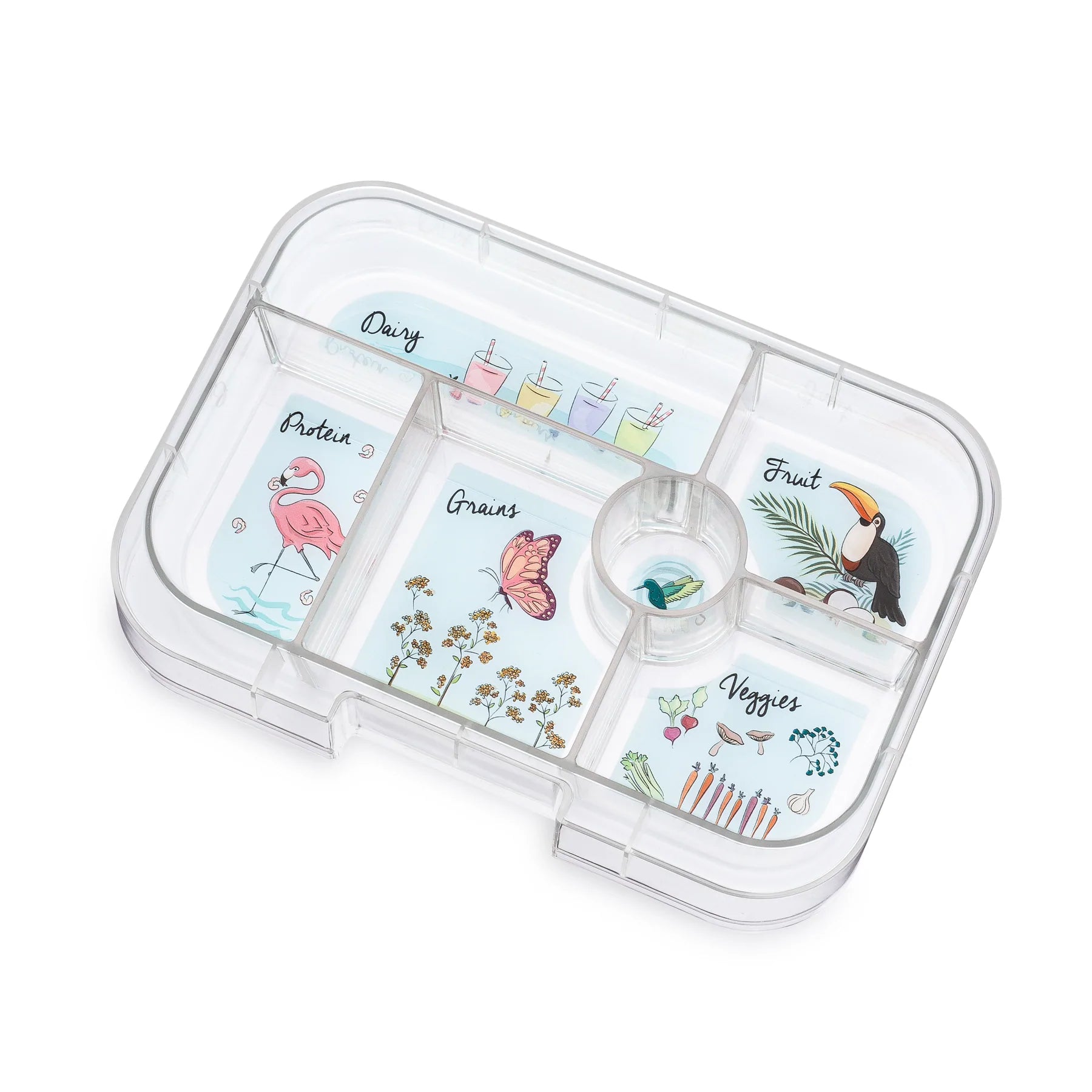 • IDEAL PORTION SIZES FOR KIDS: Yumbox Original is designed for little kids. Our goal is to promote healthy & balanced eating. The illustrated removable tray is divided up into 5 compartments, each 1/2 cup portion size plus a round dip/treat well. Right portions mean less food waste. Variety means your child will eat better!