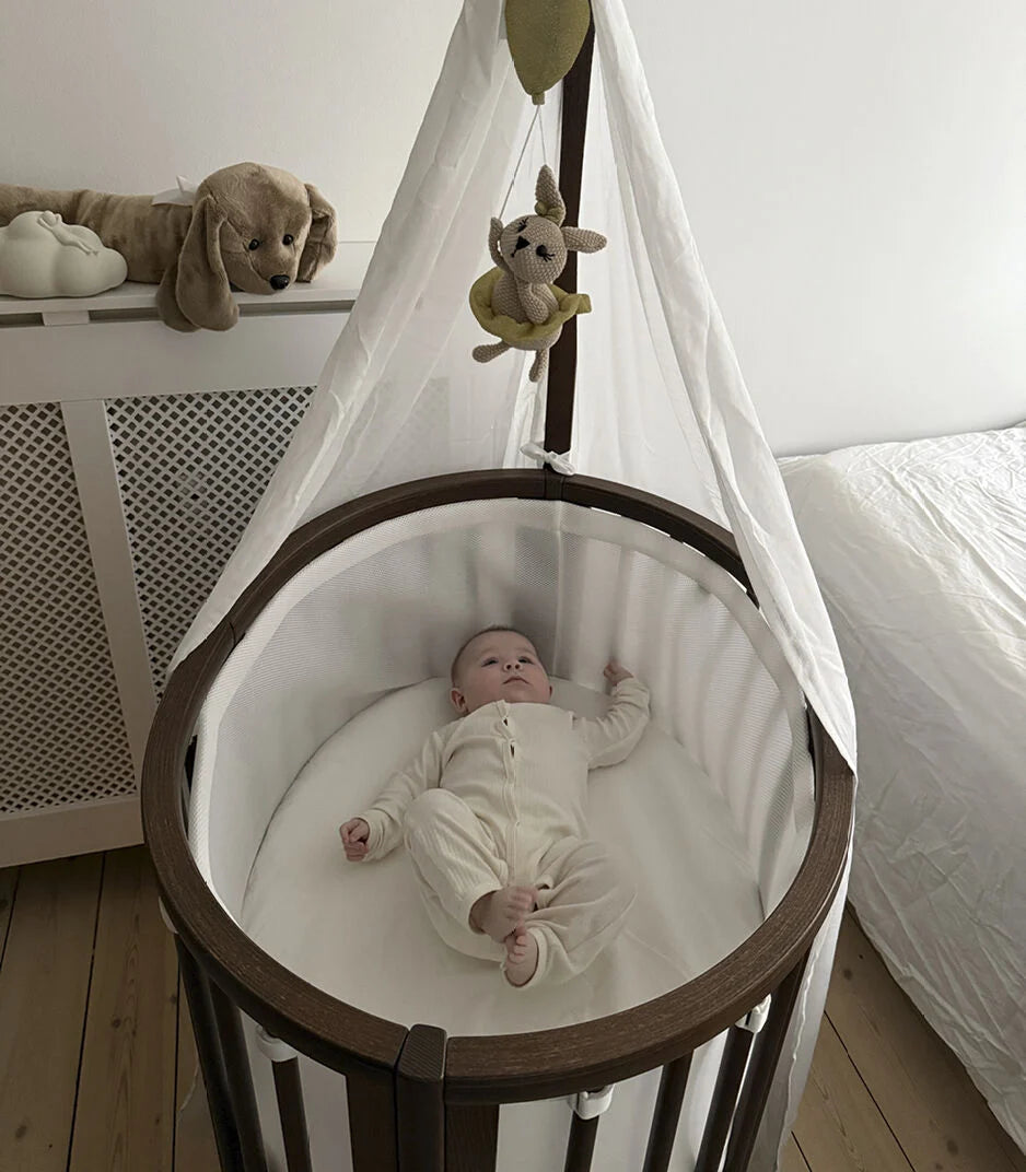 The Stokke® Sleepi™ Mini is the ideal first bed for your newborn. Creating a nest-like environment, it helps baby feel snug and secure. Soft oval design cocoons your baby offering comfort and familiarity for restful sleep and the sweetest of dreams. The drape rod and canopy make it a truly elegant addition to any nursery. Lockable swivel wheels can be used to rock your baby gently to sleep and makes your crib easy to move from room to room. At only 67 cm / 26,4 in inches wide, it’s amazingly space efficient, making it ideal for petite nurseries. The Stokke® Sleepi™ concept has been developed with sound sleep and safety in mind. It is available with a new firm and breathable Sleepi™ mattress which exceeds the highest safety standards. Accessorize with the breathable mesh liner and high-quality textiles. Stokke® Sleepi™ is FSC®-certified using responsibly sourced wood. FSC is a sustainable forest management solution. With this Stokke® Sleepi™ we help take care of the world’s forests.